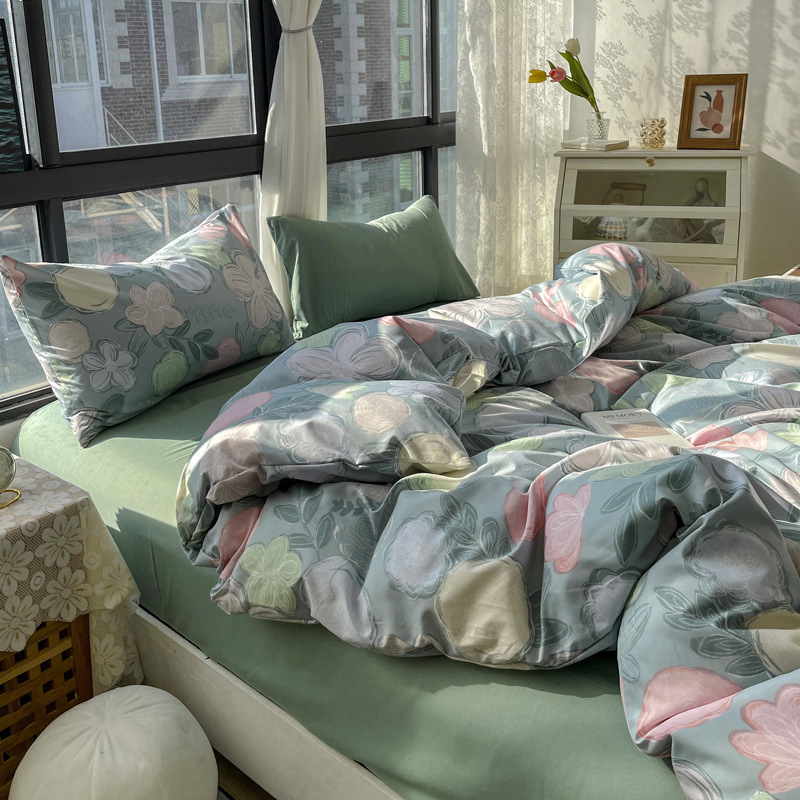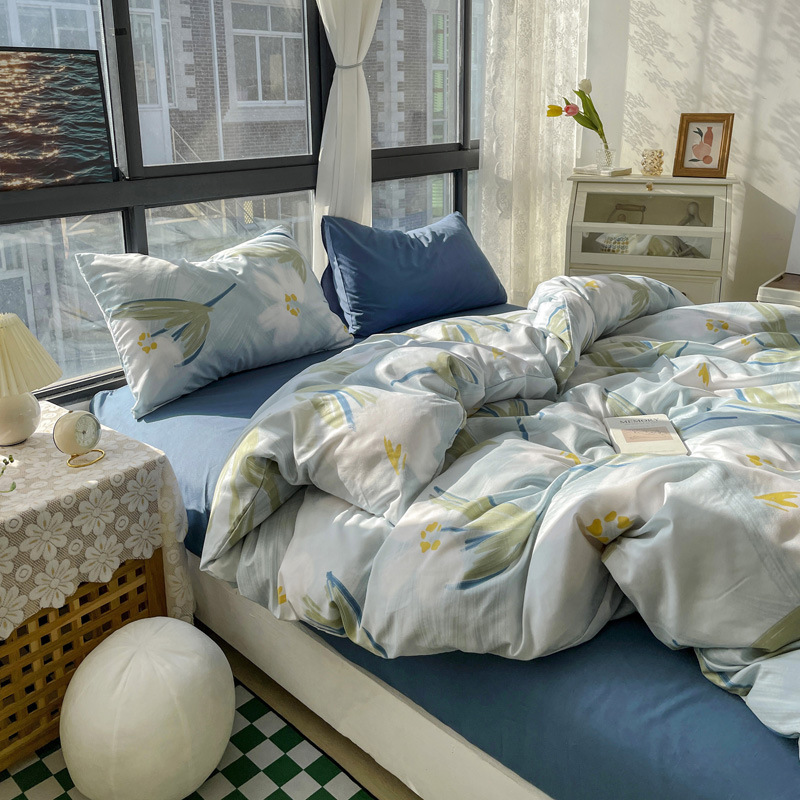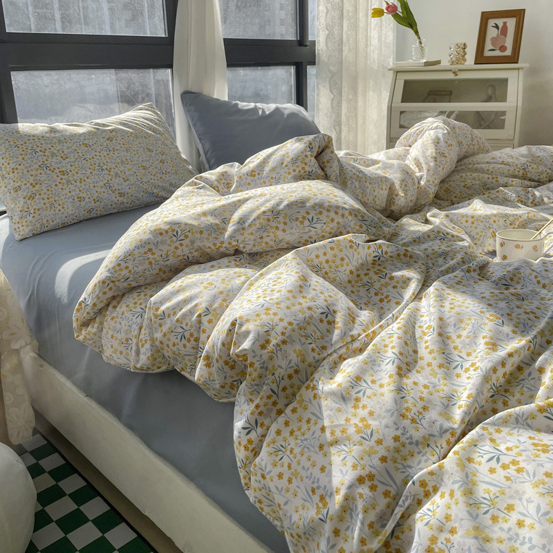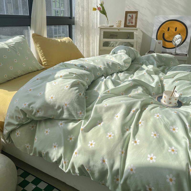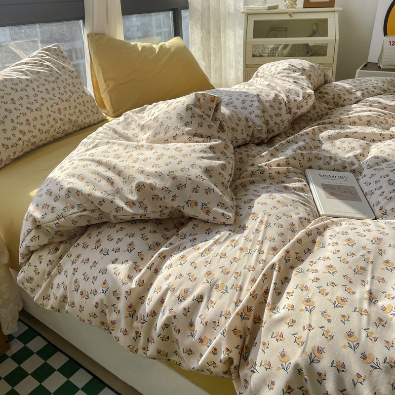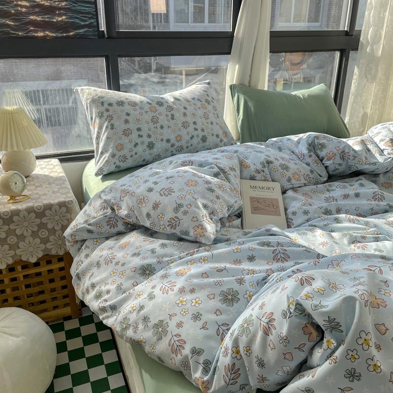 韩式小清新床上四件套被罩少女水洗棉床单被套三件套宿舍裸睡单人