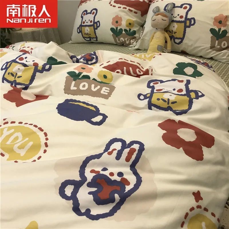 南极人ins卡通亲肤床上四件套被套床单学生宿舍用品单双人三件套