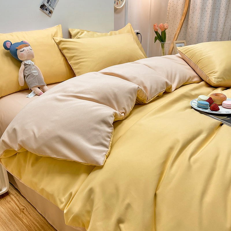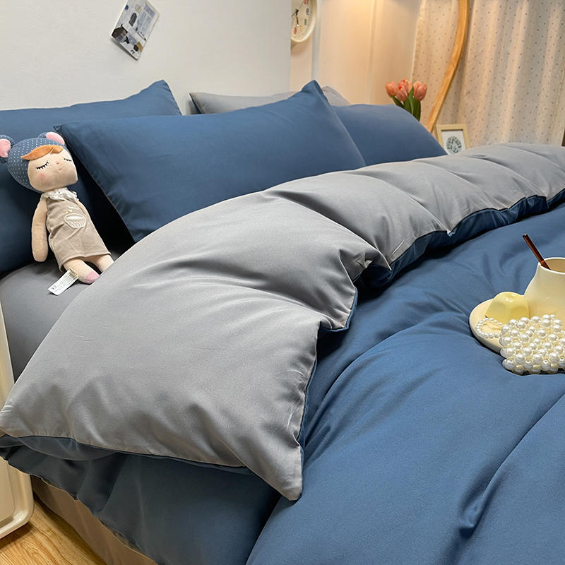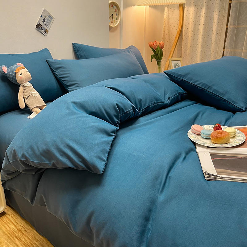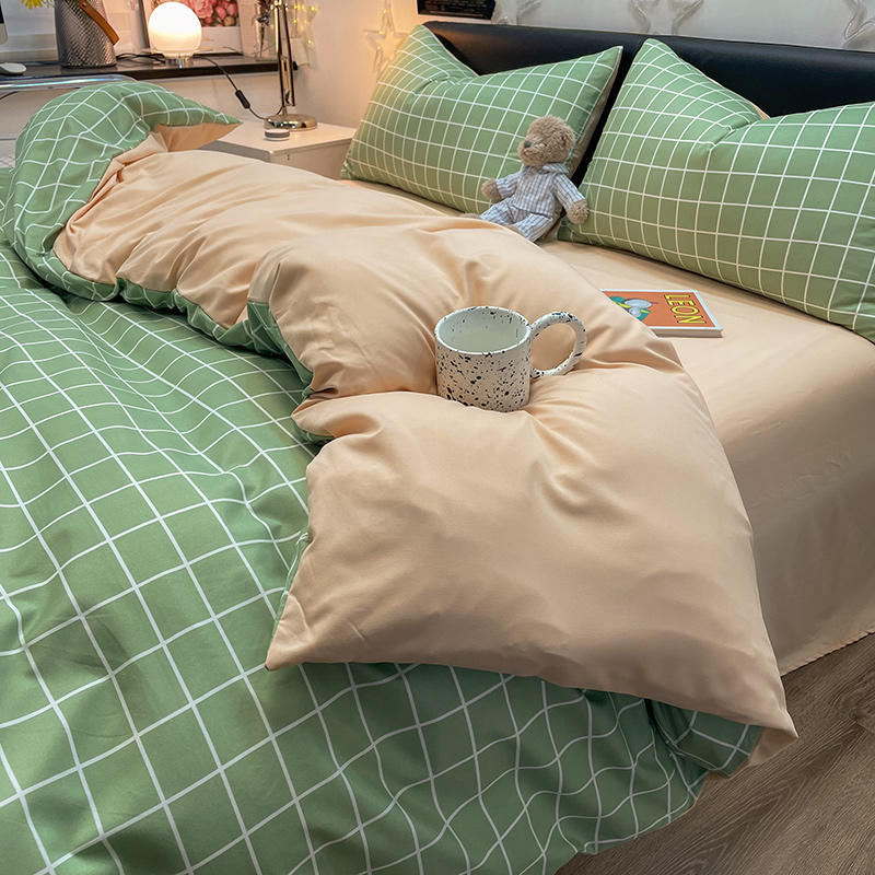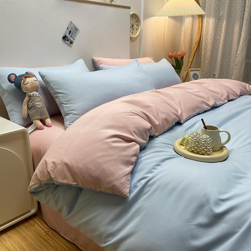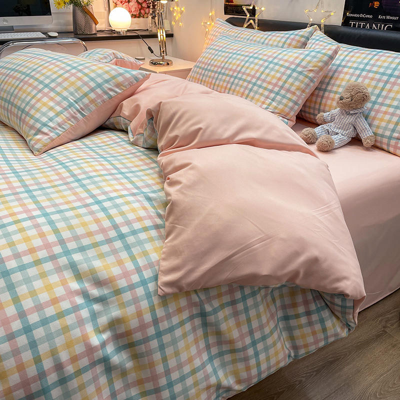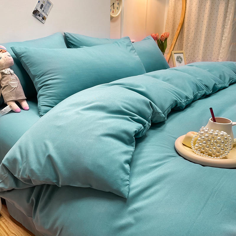 小清新水洗棉四件套纯色双拼床单被套全棉学生宿舍三件套床上用品