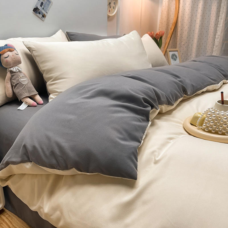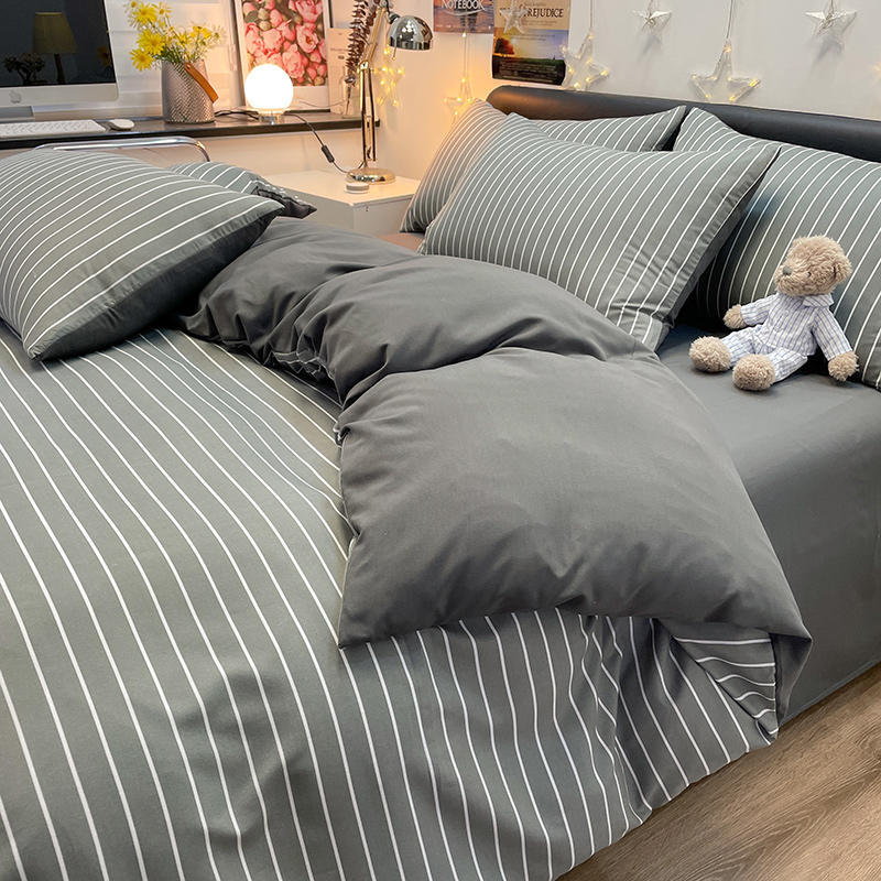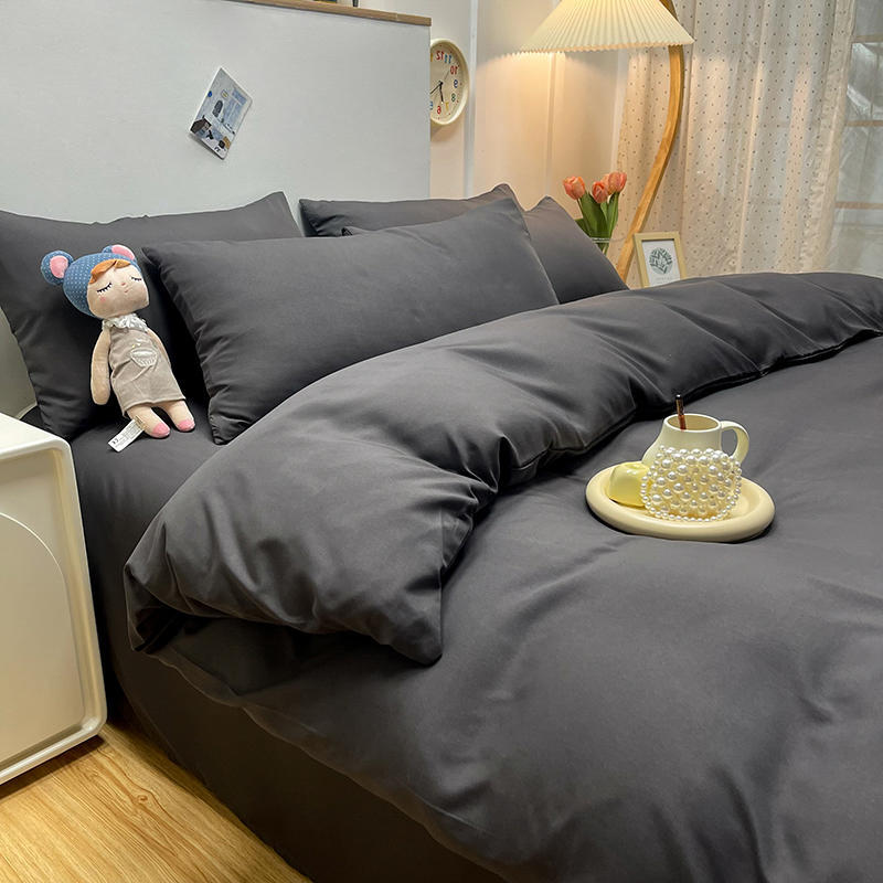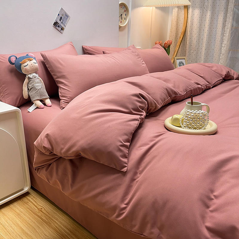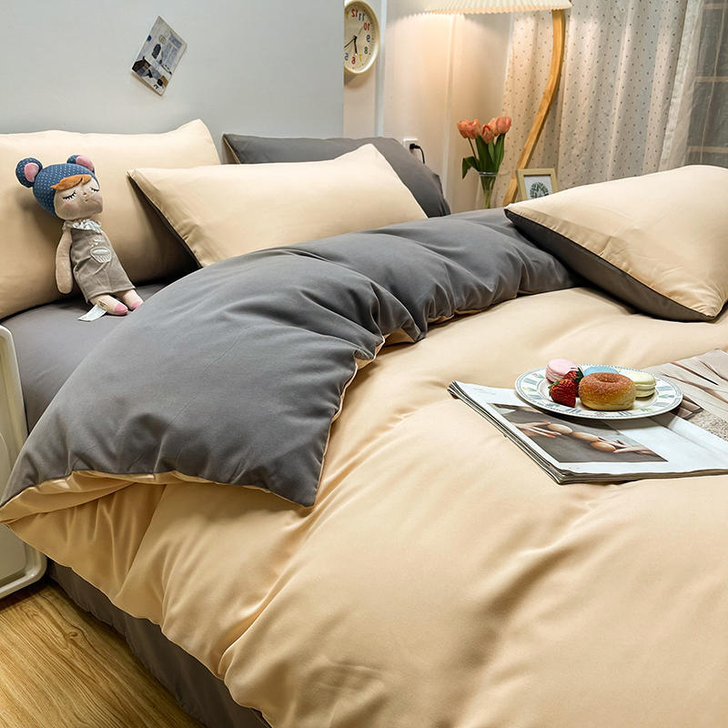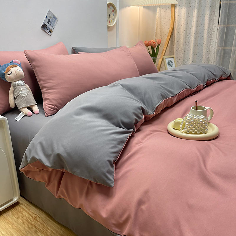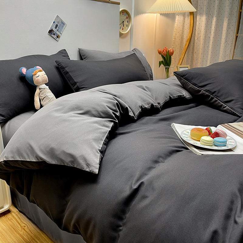 小清新水洗棉四件套纯色双拼床单被套全棉学生宿舍三件套床上用品