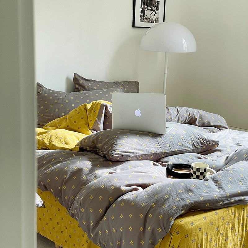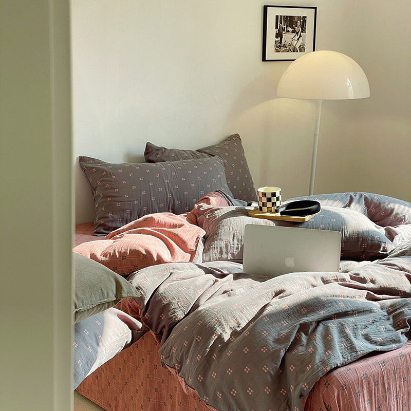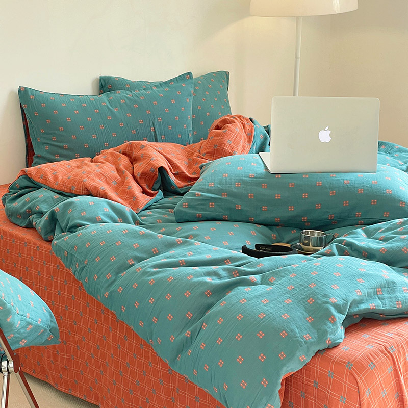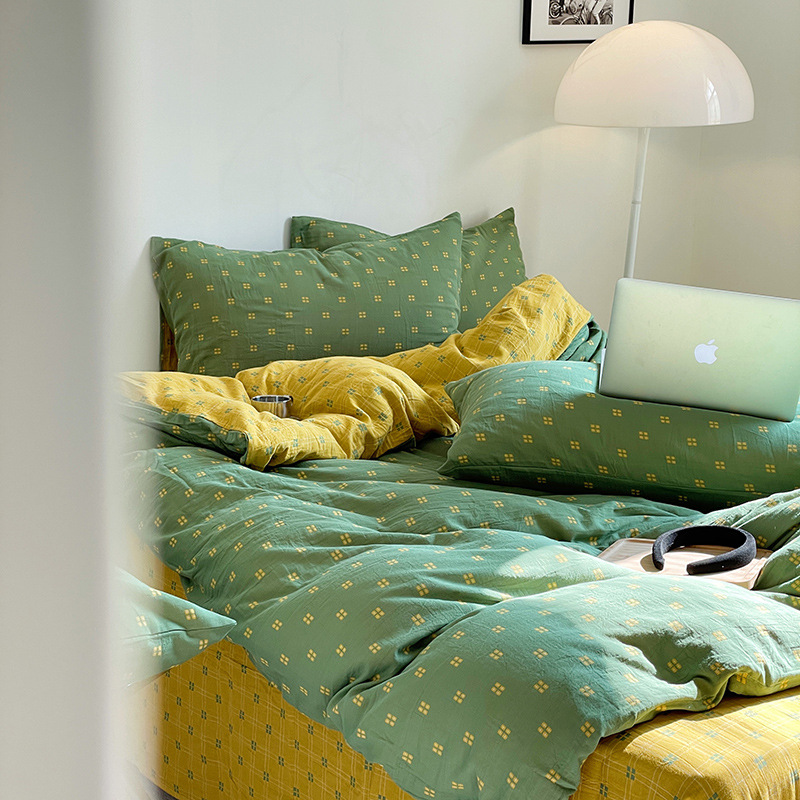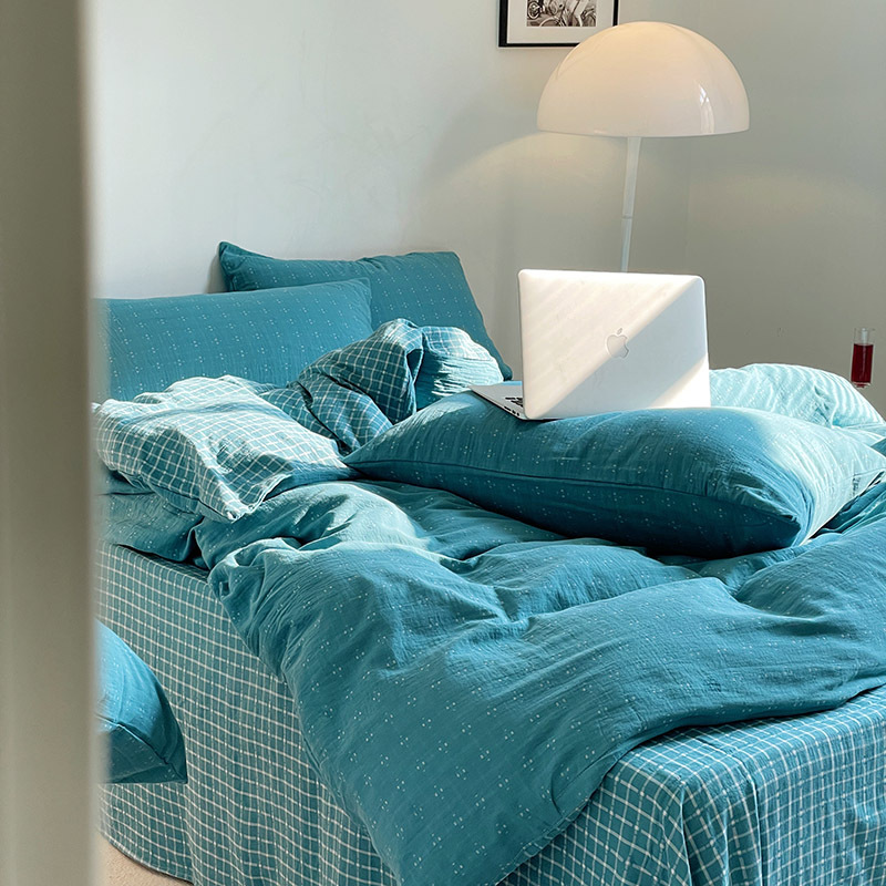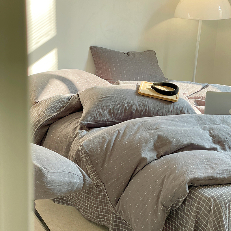新款双层纱全棉色织四件套单人三件套一件代发被套床单批发团购