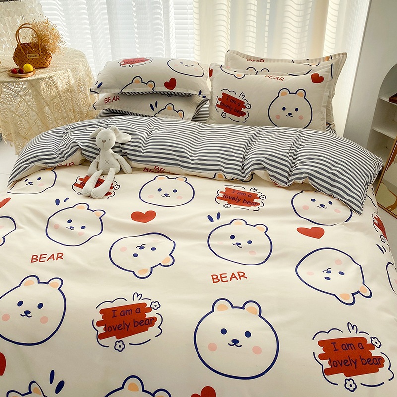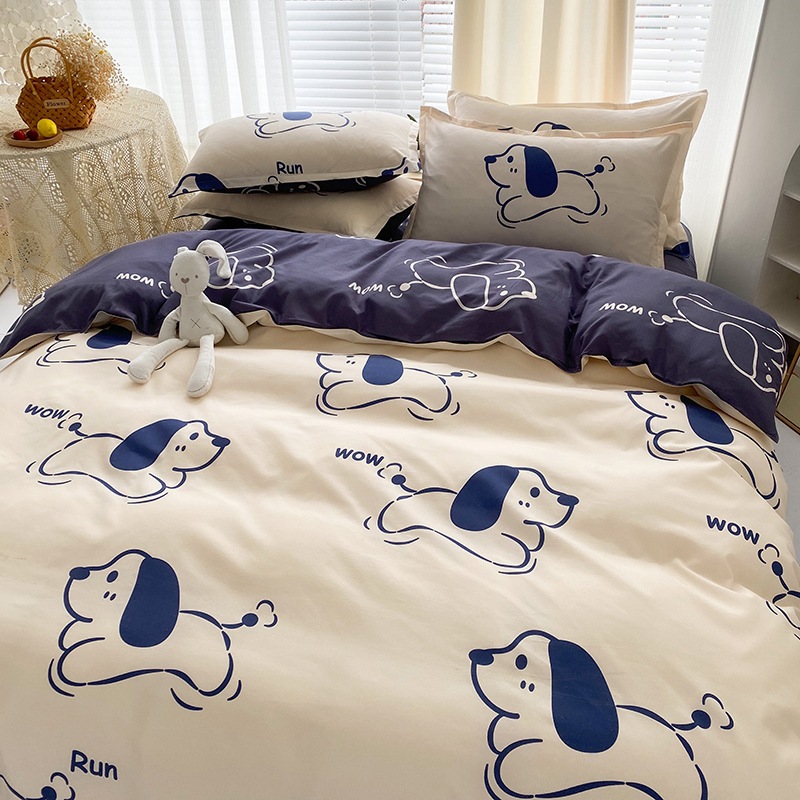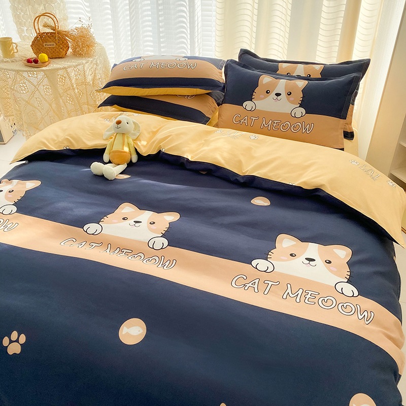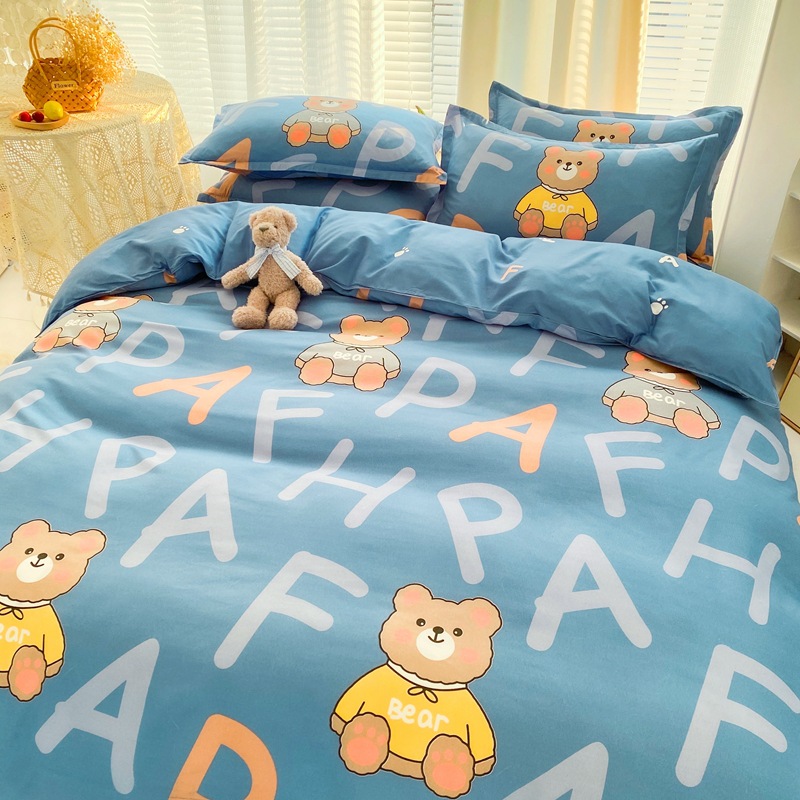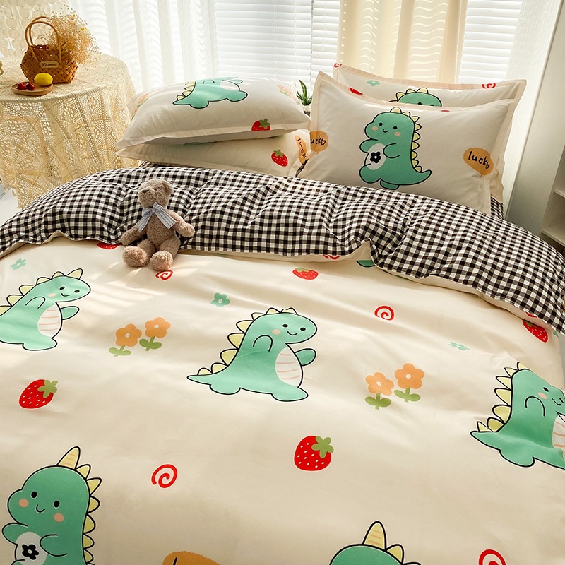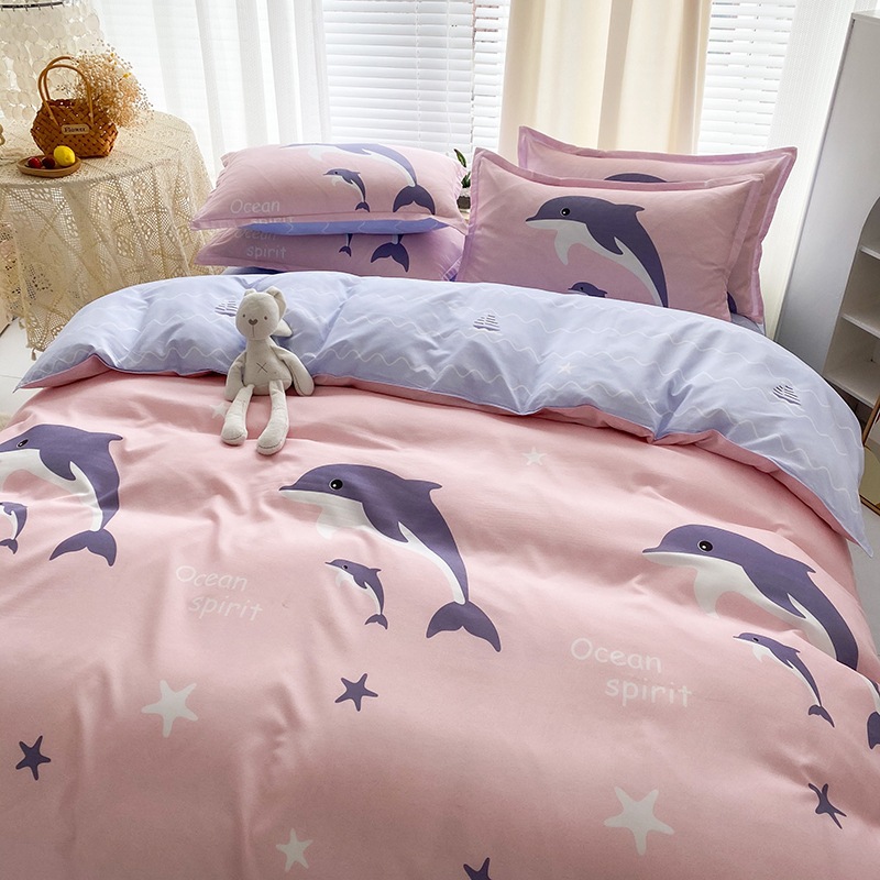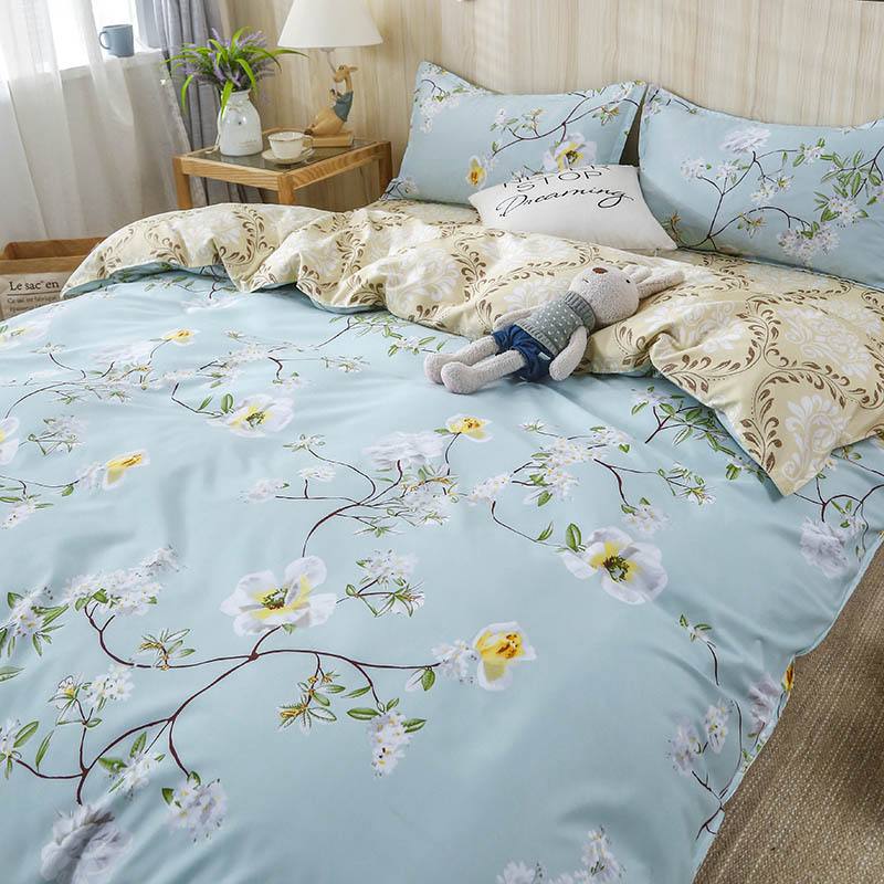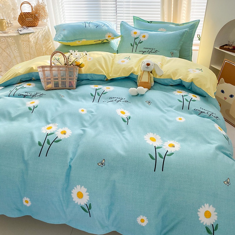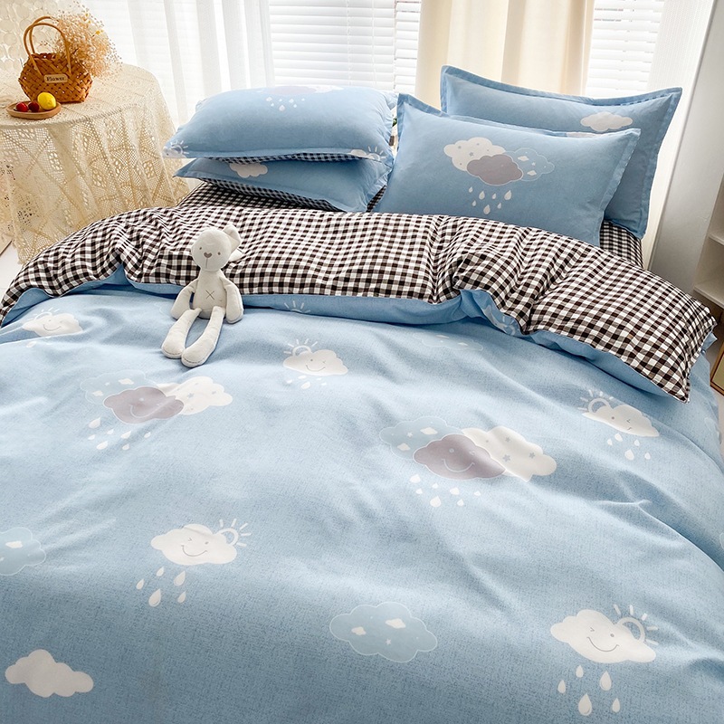 小清新亲肤磨毛芦荟棉四件套床上用品学生宿舍单人床单被套三件套