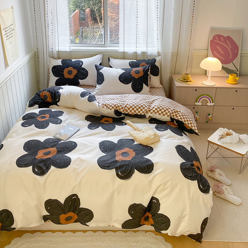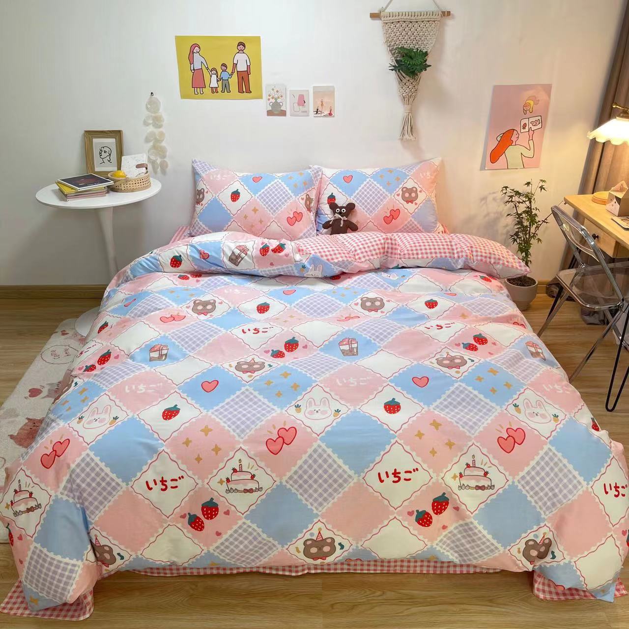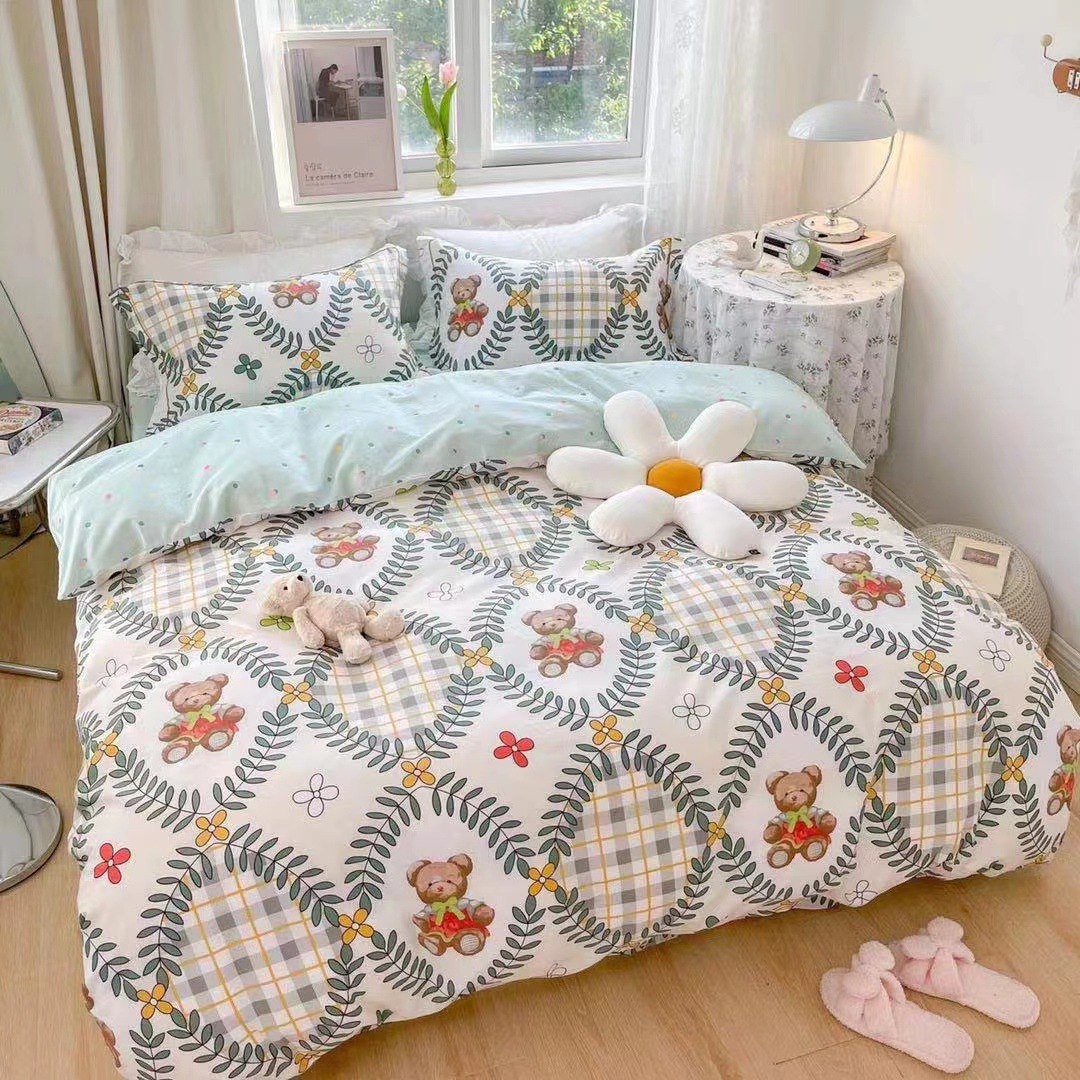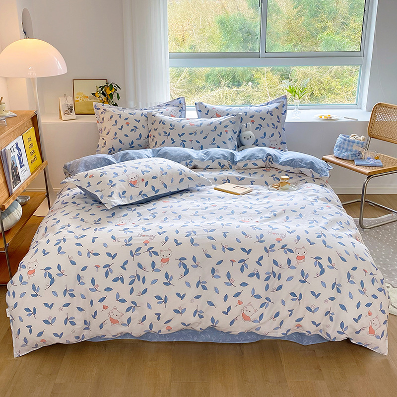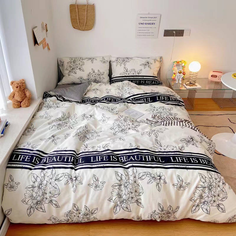 北欧ins床上四件套纯棉全棉100小清新被套床单被罩床笠宿舍三件套