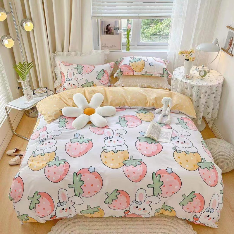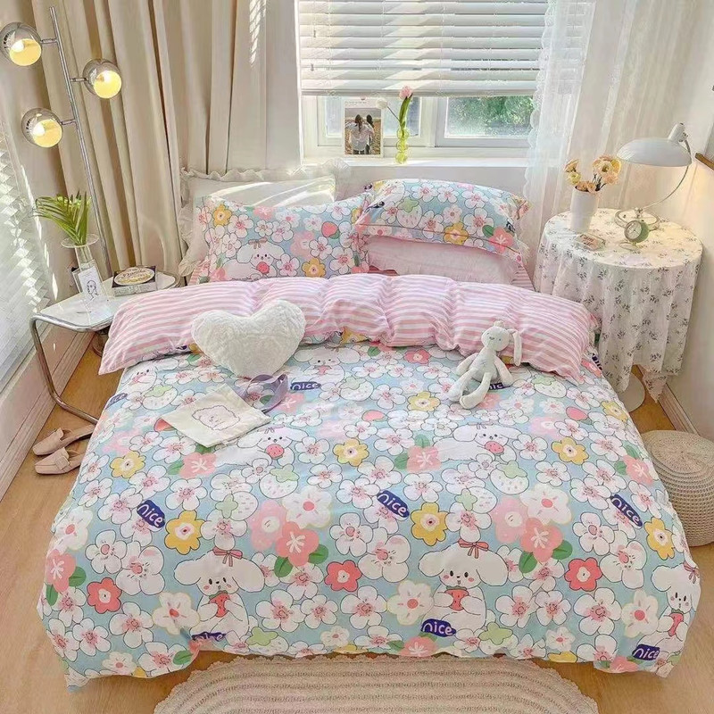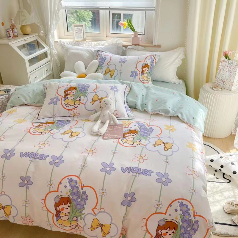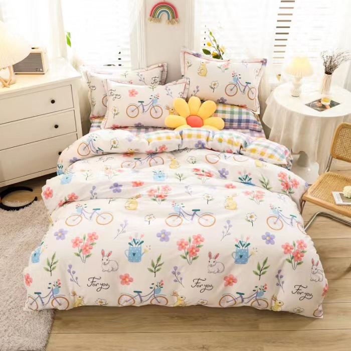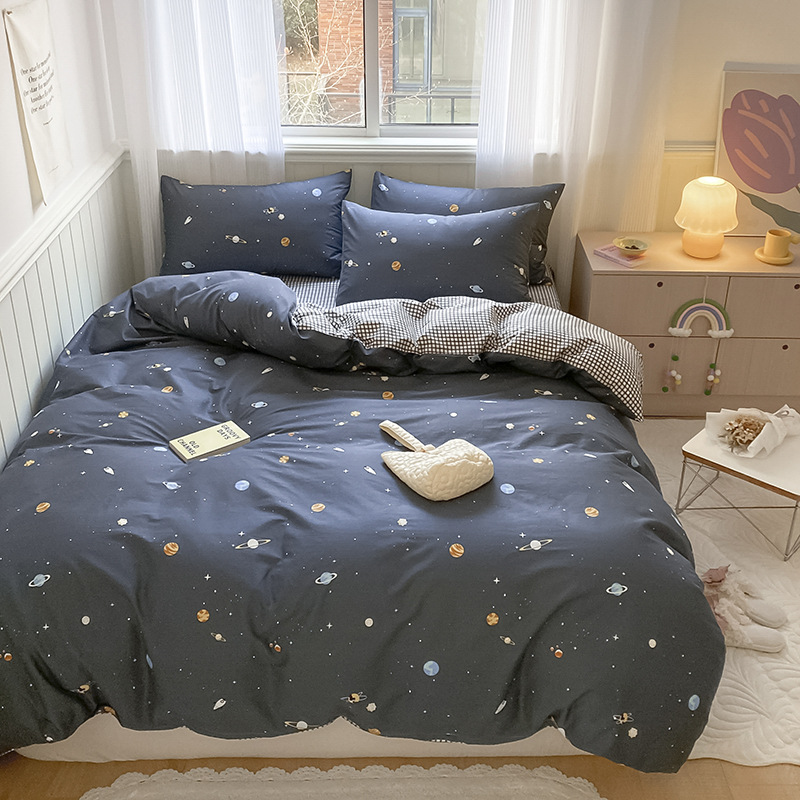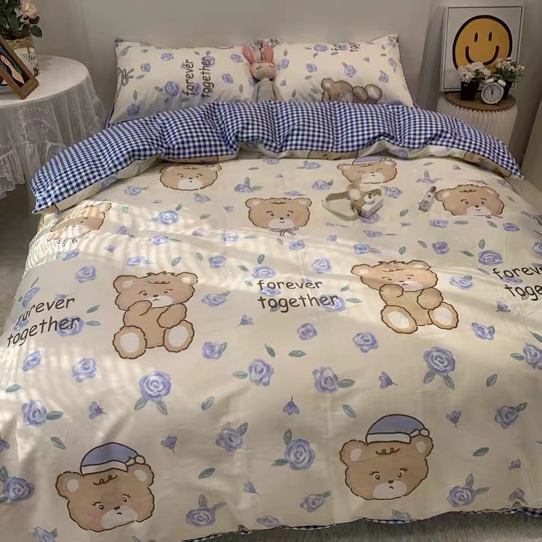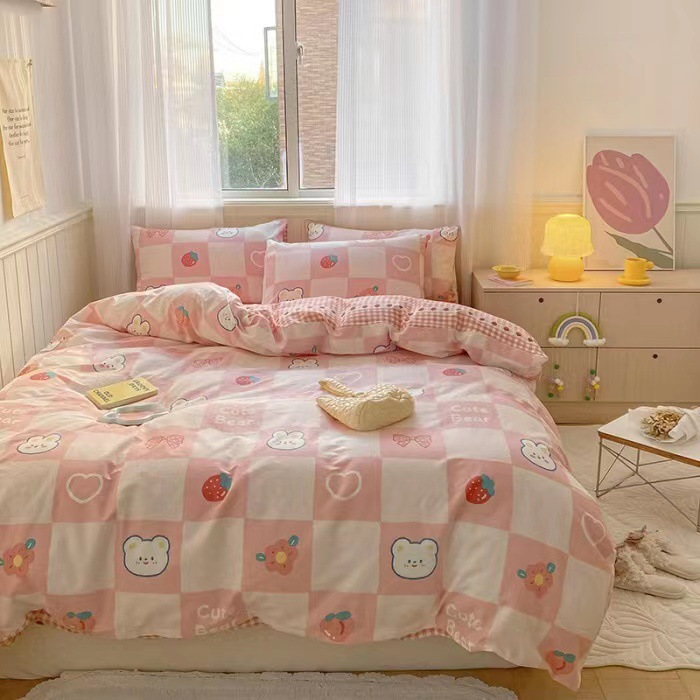 北欧ins床上四件套纯棉全棉100小清新被套床单被罩床笠宿舍三件套