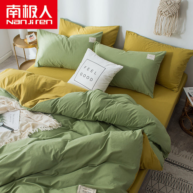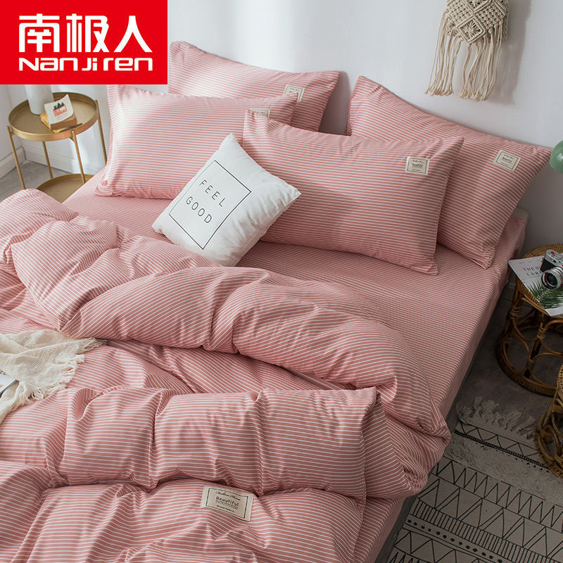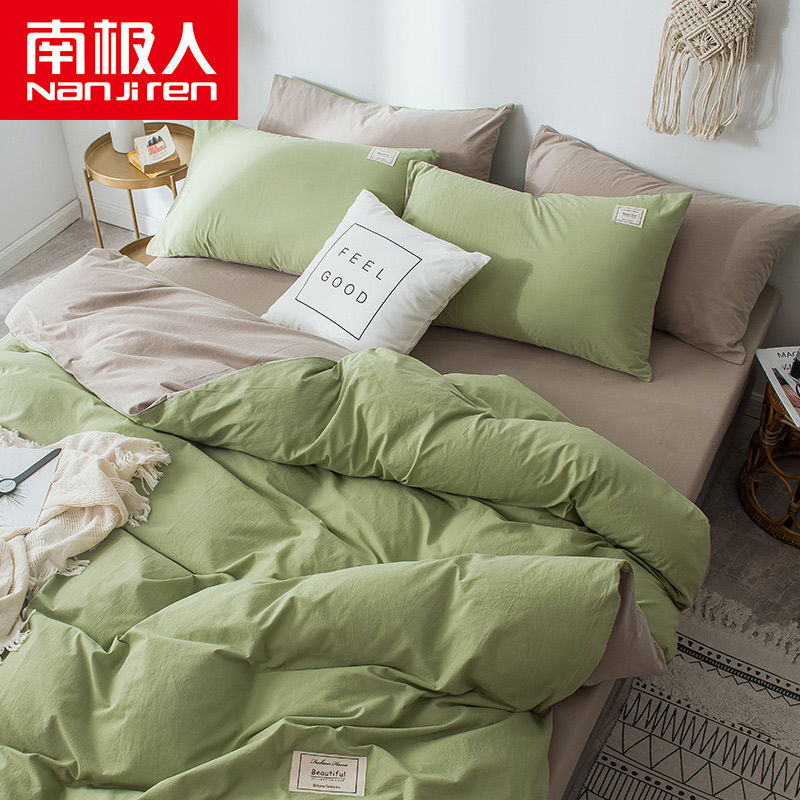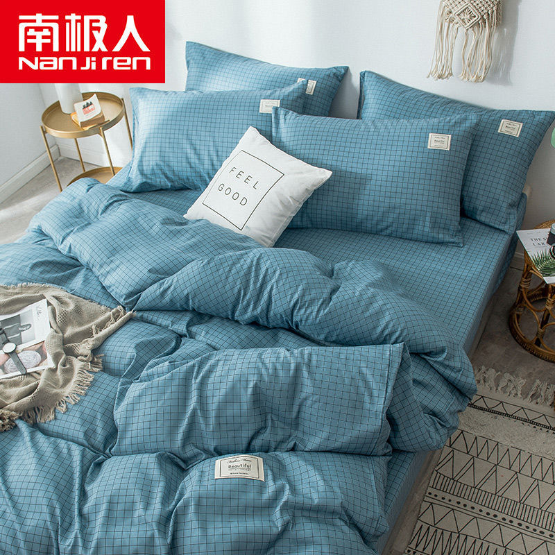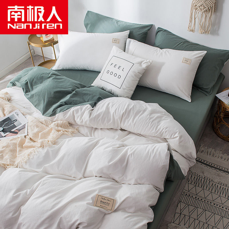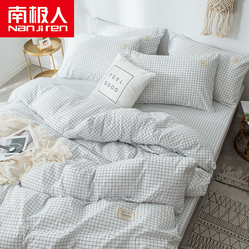 南极人北欧风四件套水洗棉被套网红款床单学生宿舍三件套床上用品