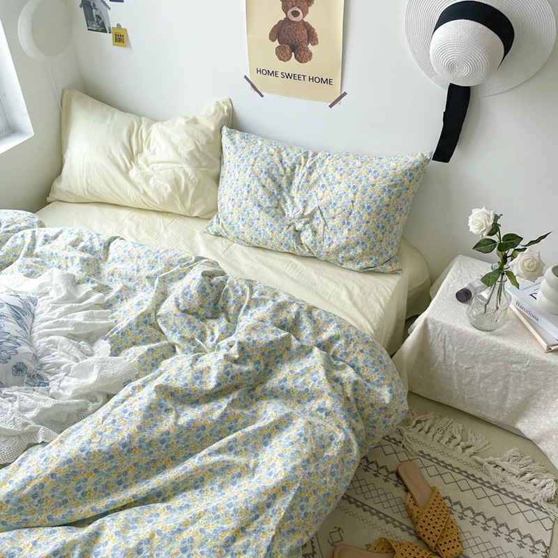 厂家直销ins复古碎花全棉纯棉床上四件套被套被罩床笠宿舍三件套