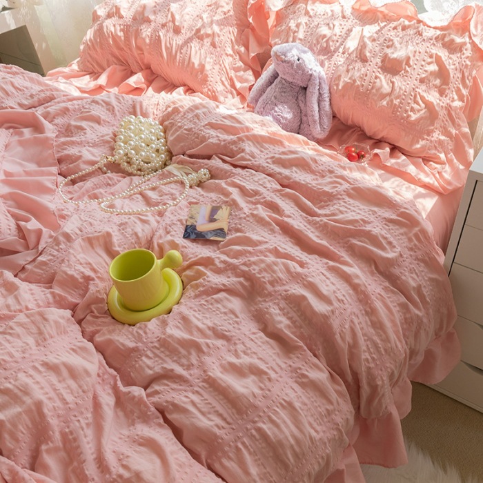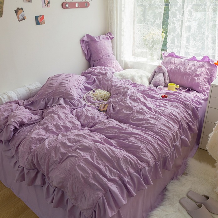 南通产地 仙女白色ins花边四件套床单被套三件套女孩公主纯色代发