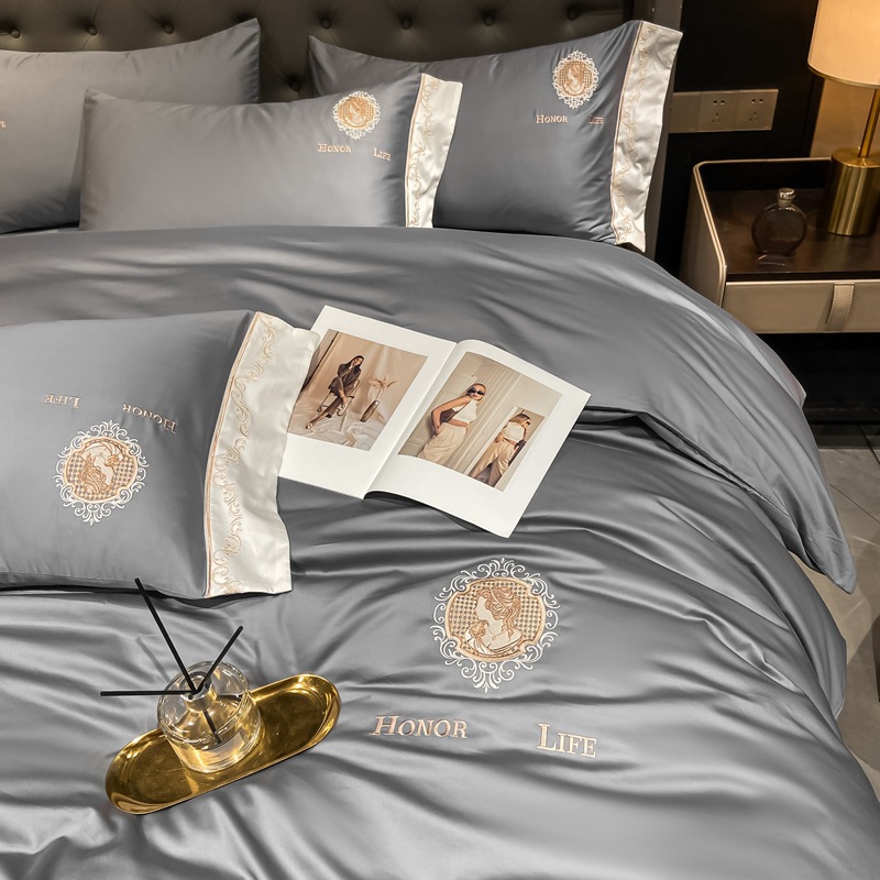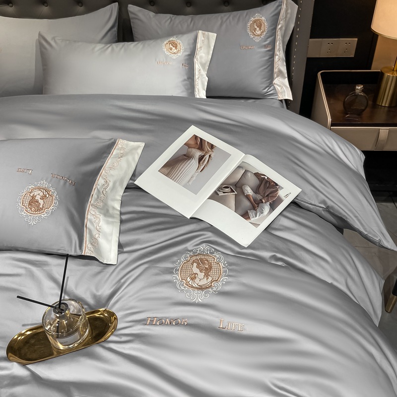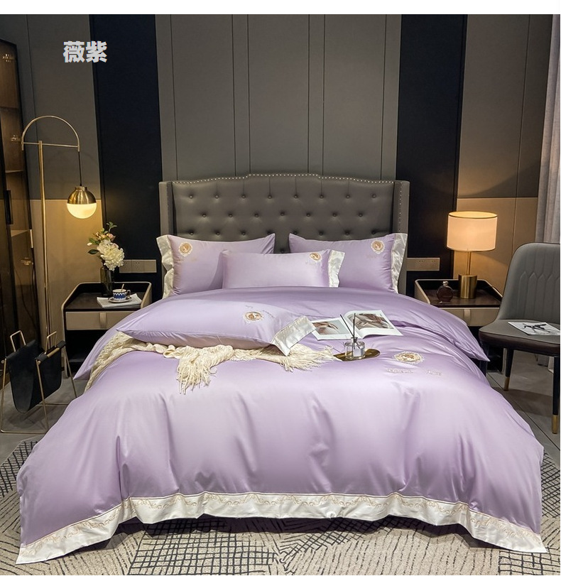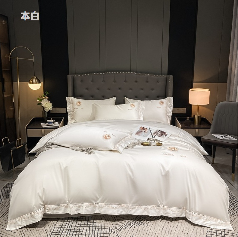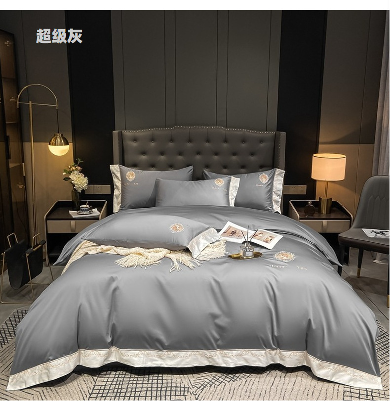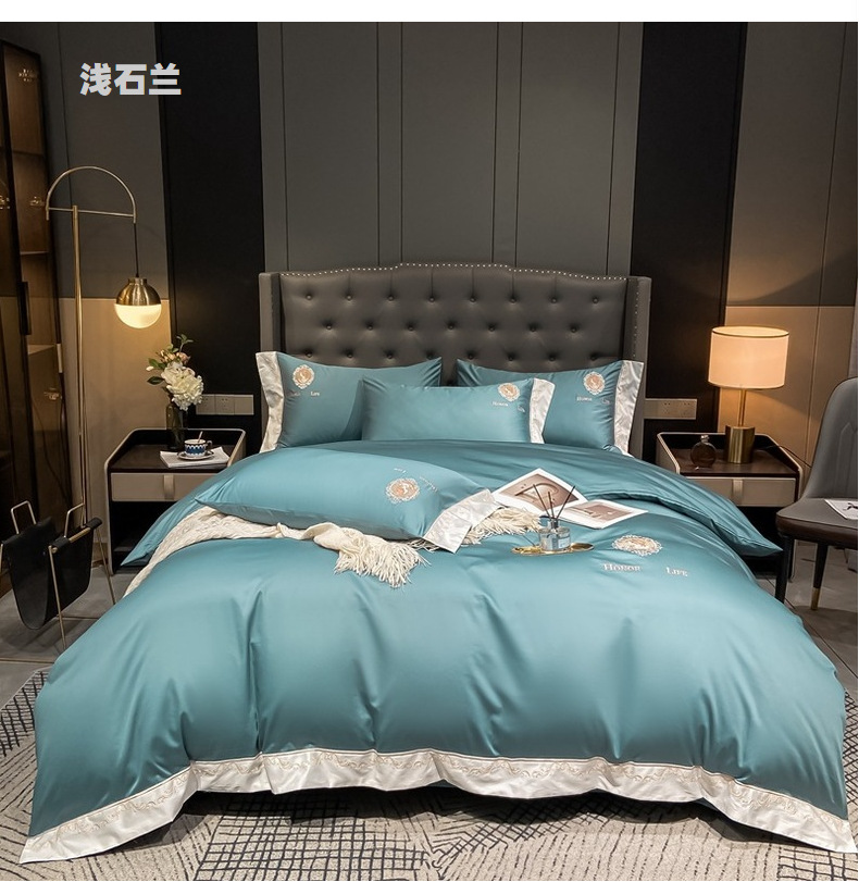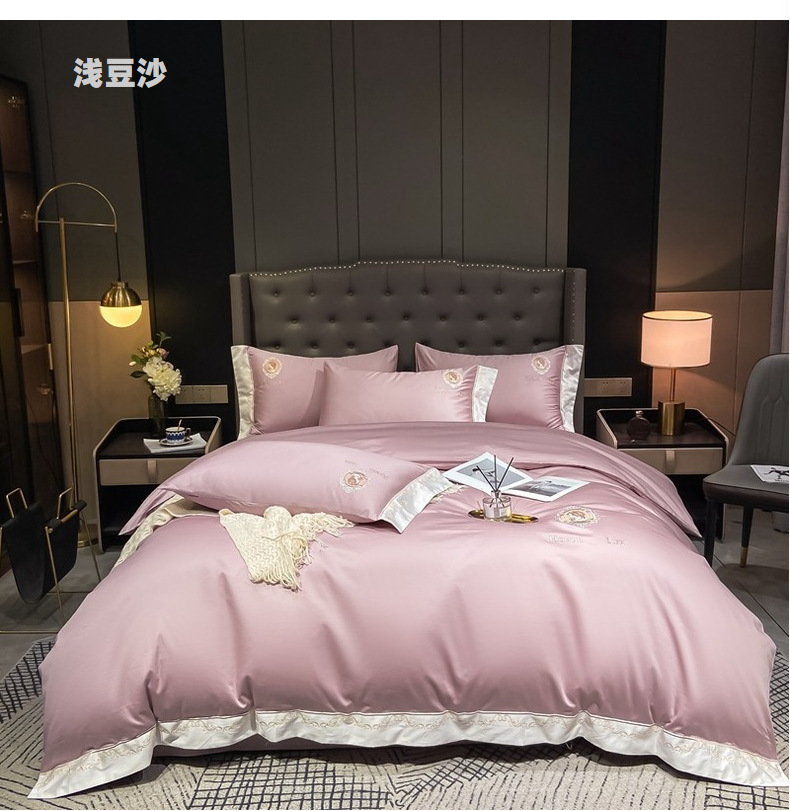 跨境直销供货床上四件套北欧风纯色绣花四件套亲肤棉轻奢床单套件
