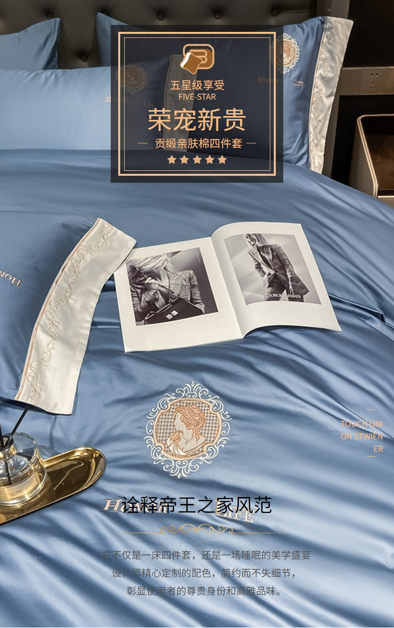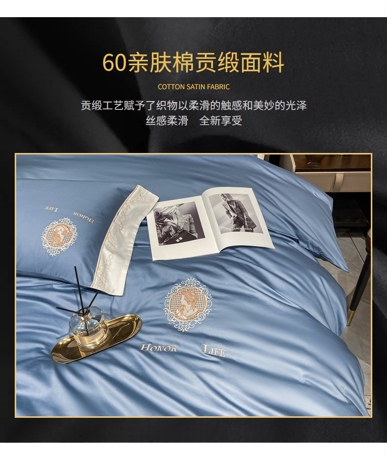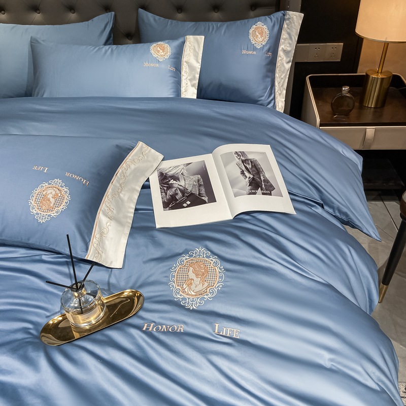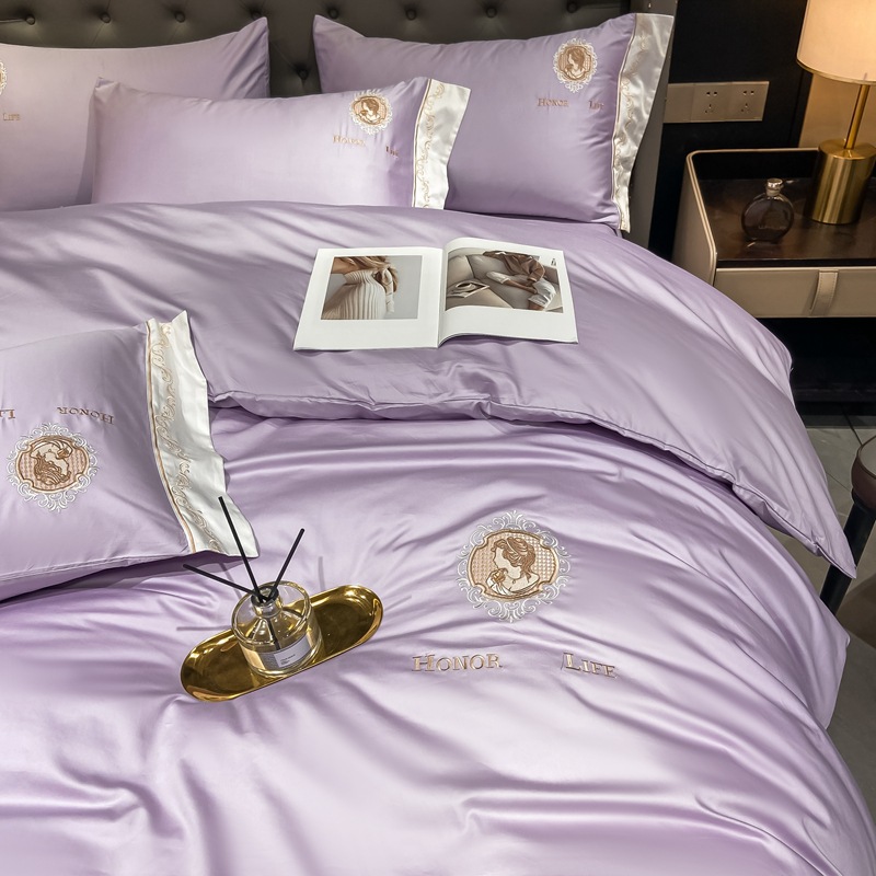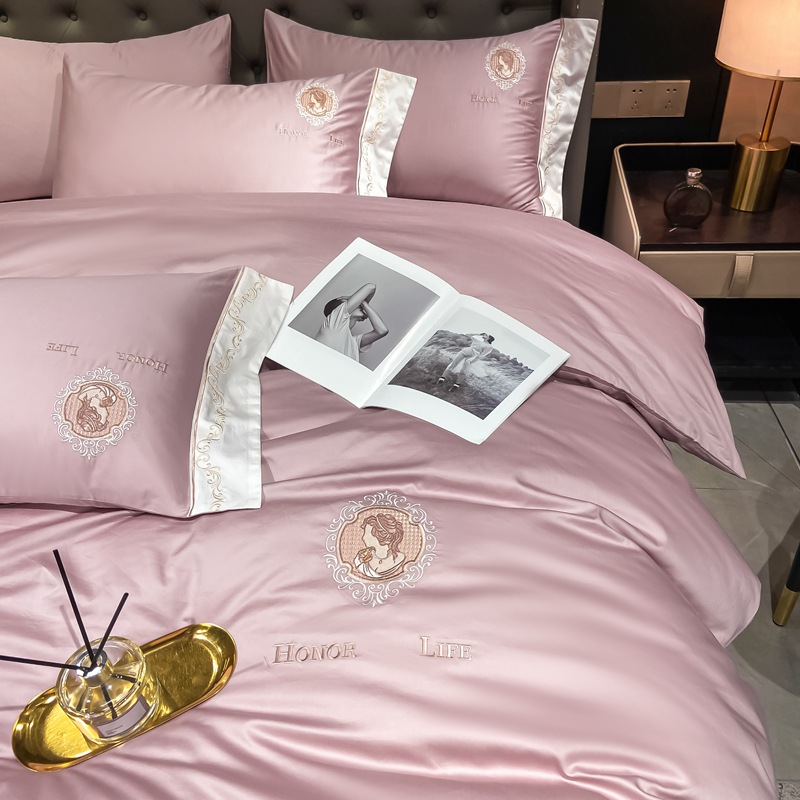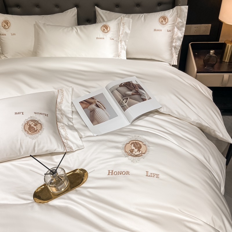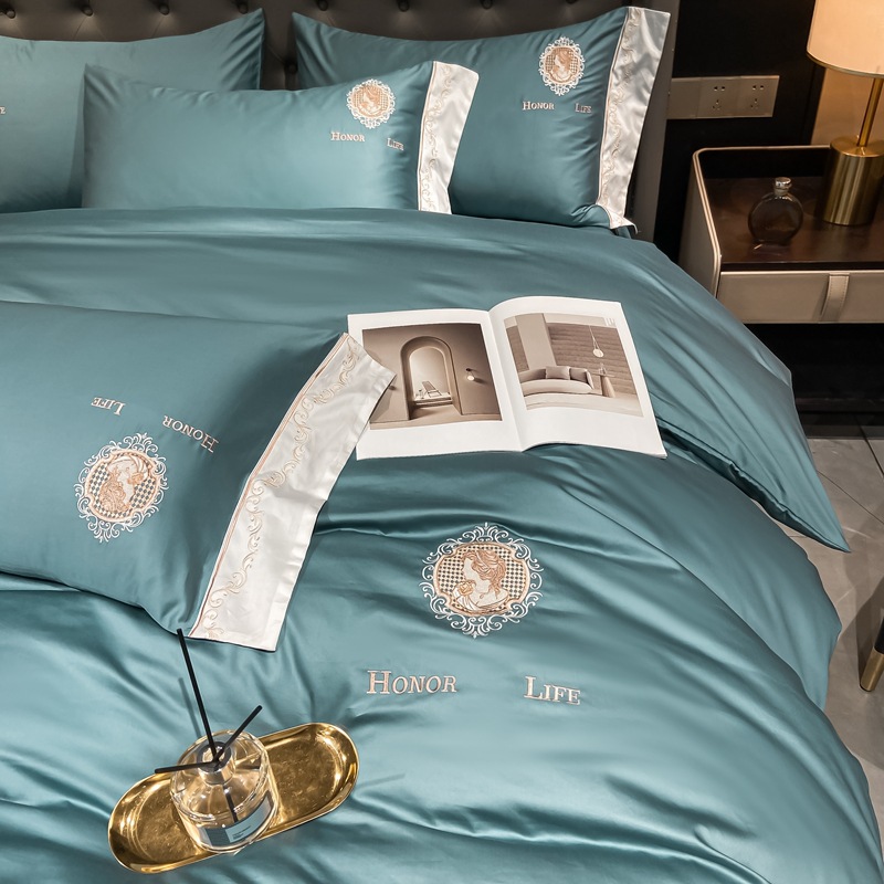 跨境直销供货床上四件套北欧风纯色绣花四件套亲肤棉轻奢床单套件