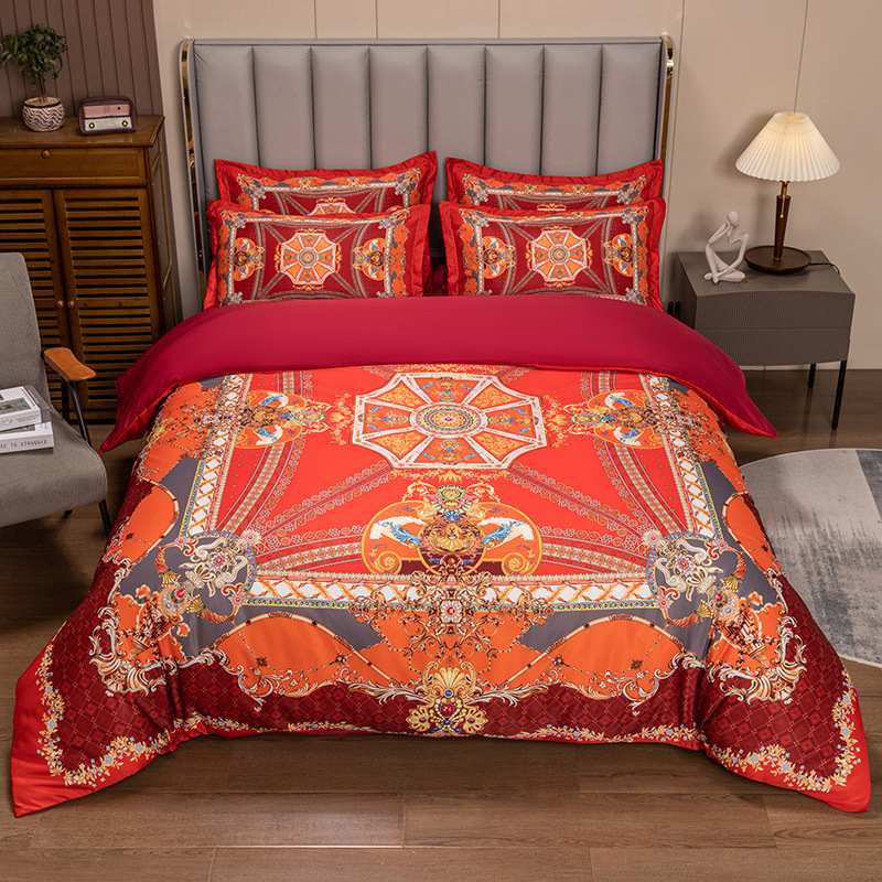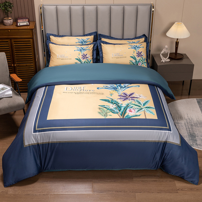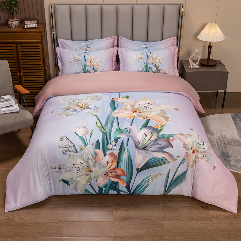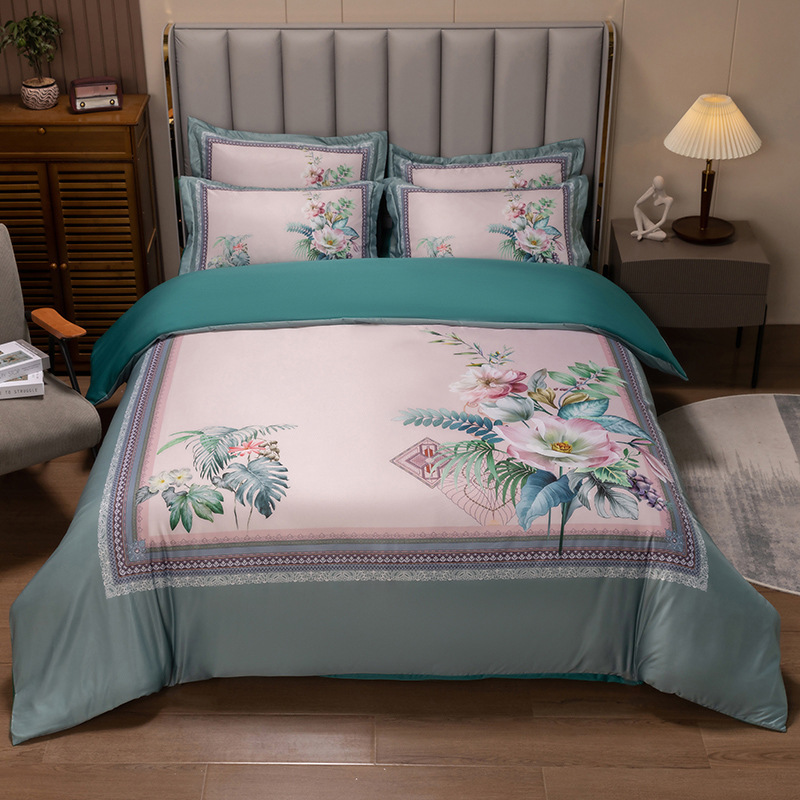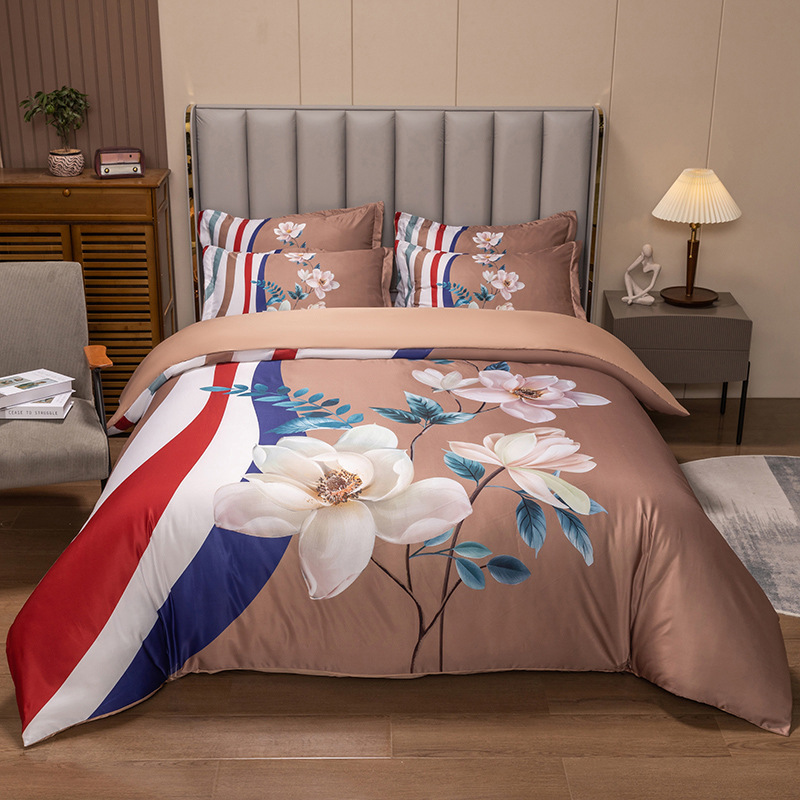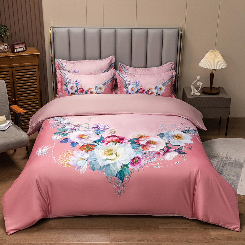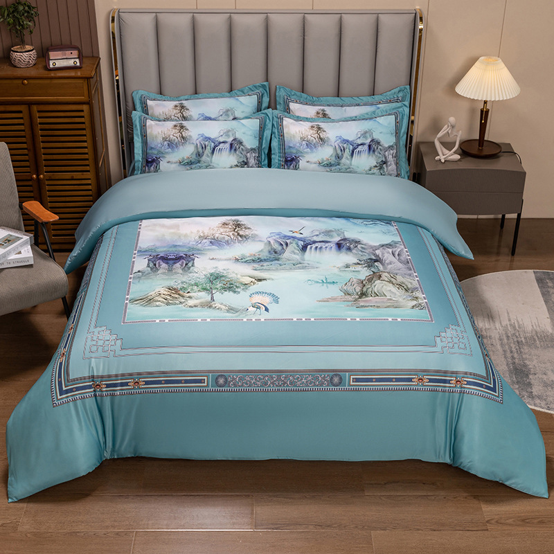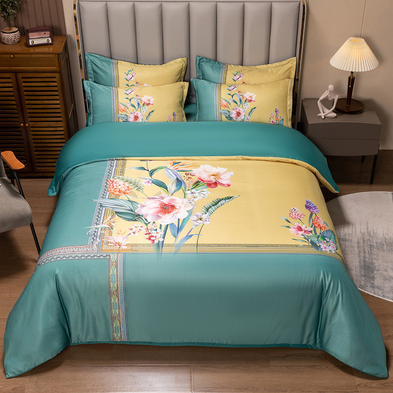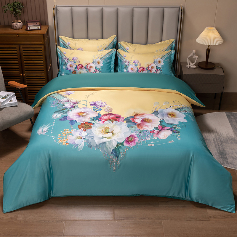 爆款新中式大版花水洗天丝四件套冰丝凉感床单被套春夏季床上用品