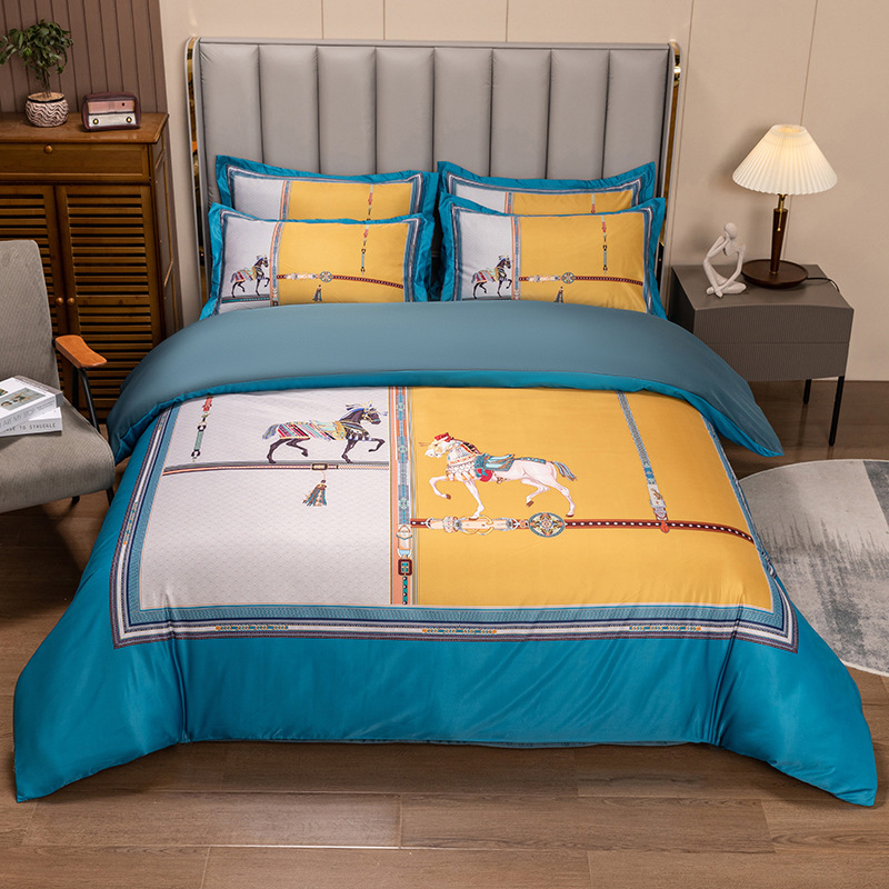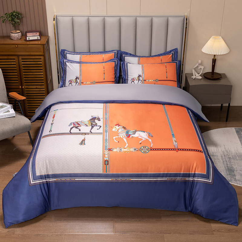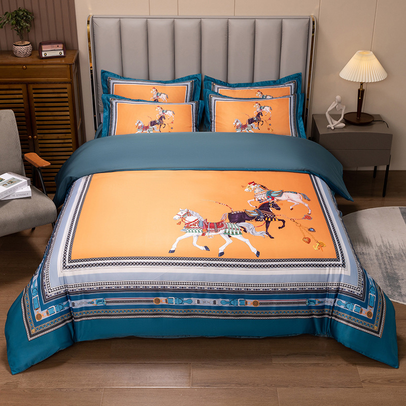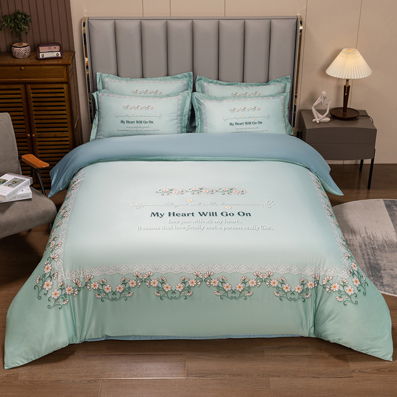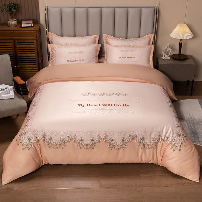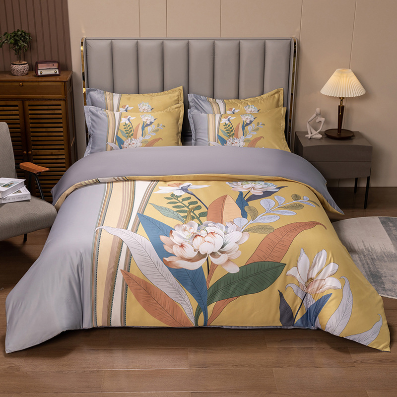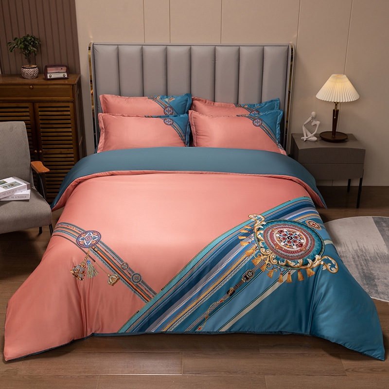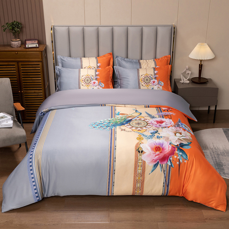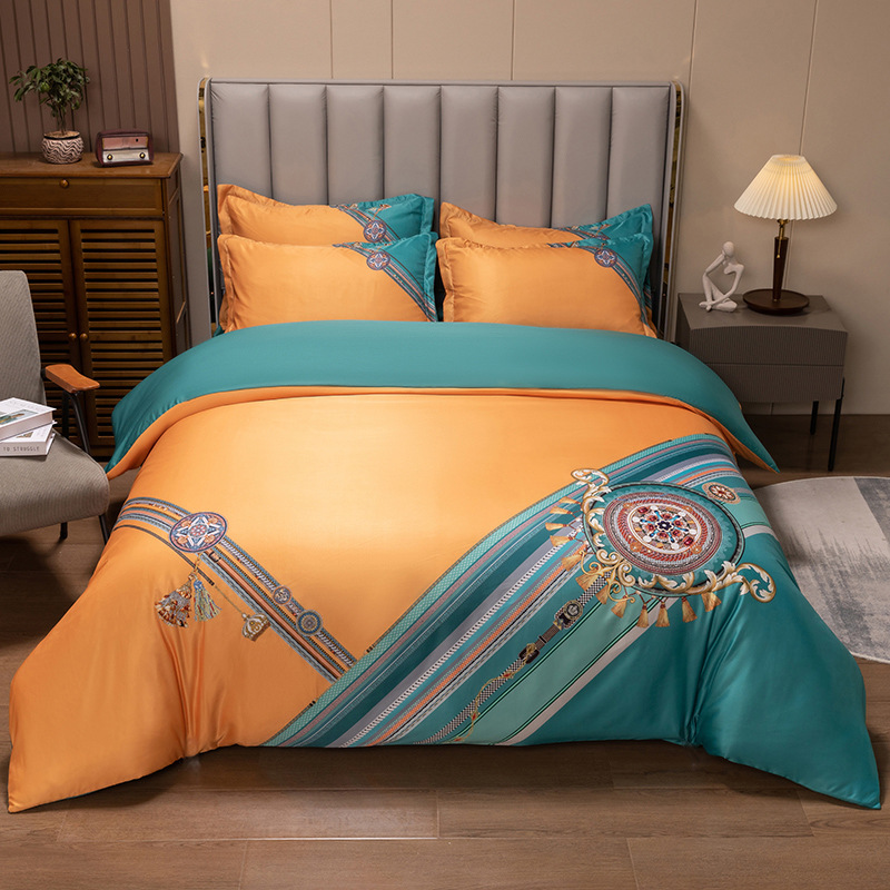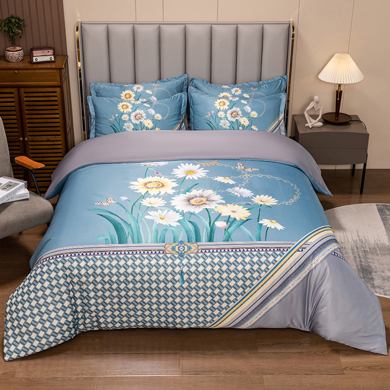 爆款新中式大版花水洗天丝四件套冰丝凉感床单被套春夏季床上用品