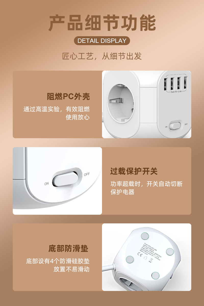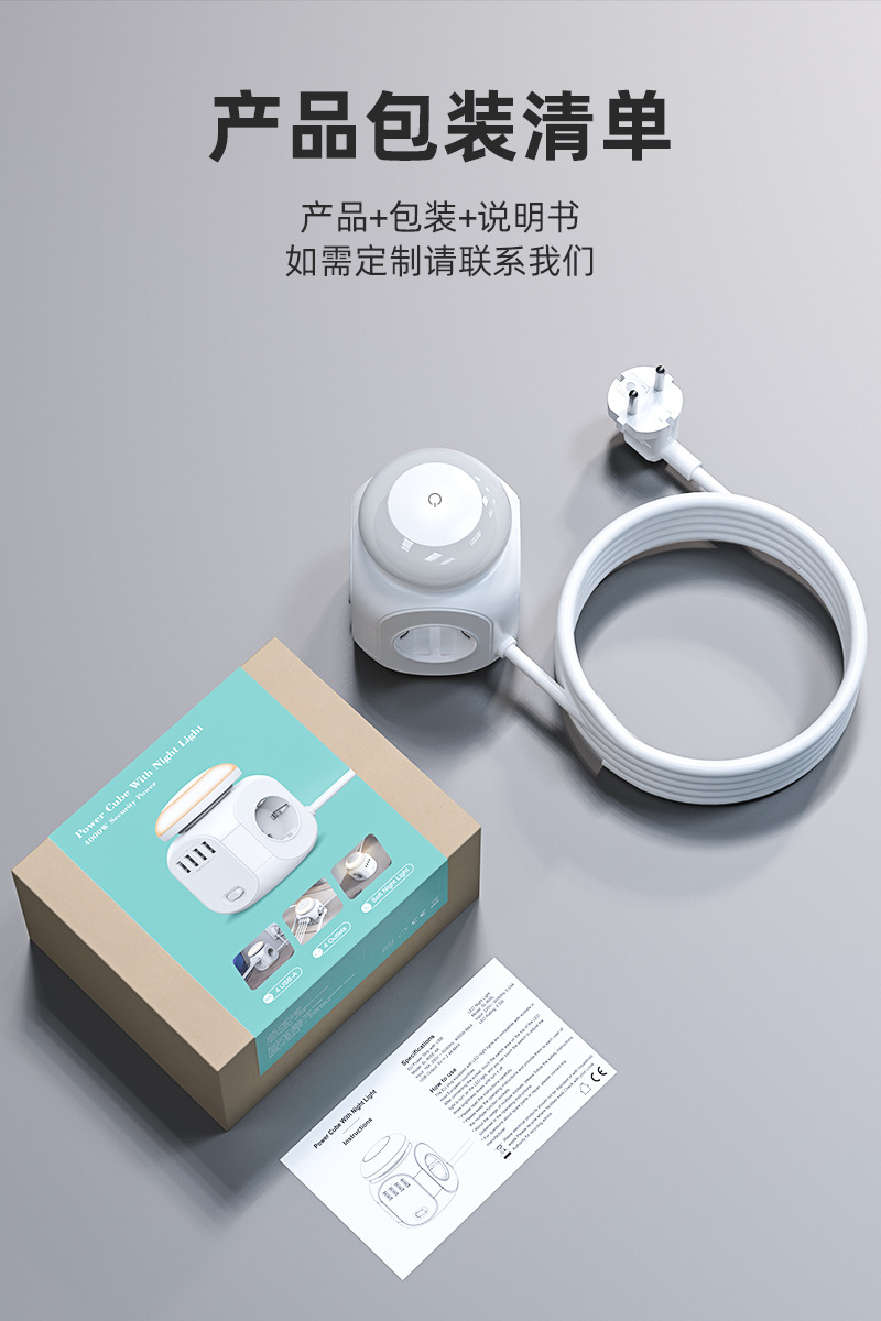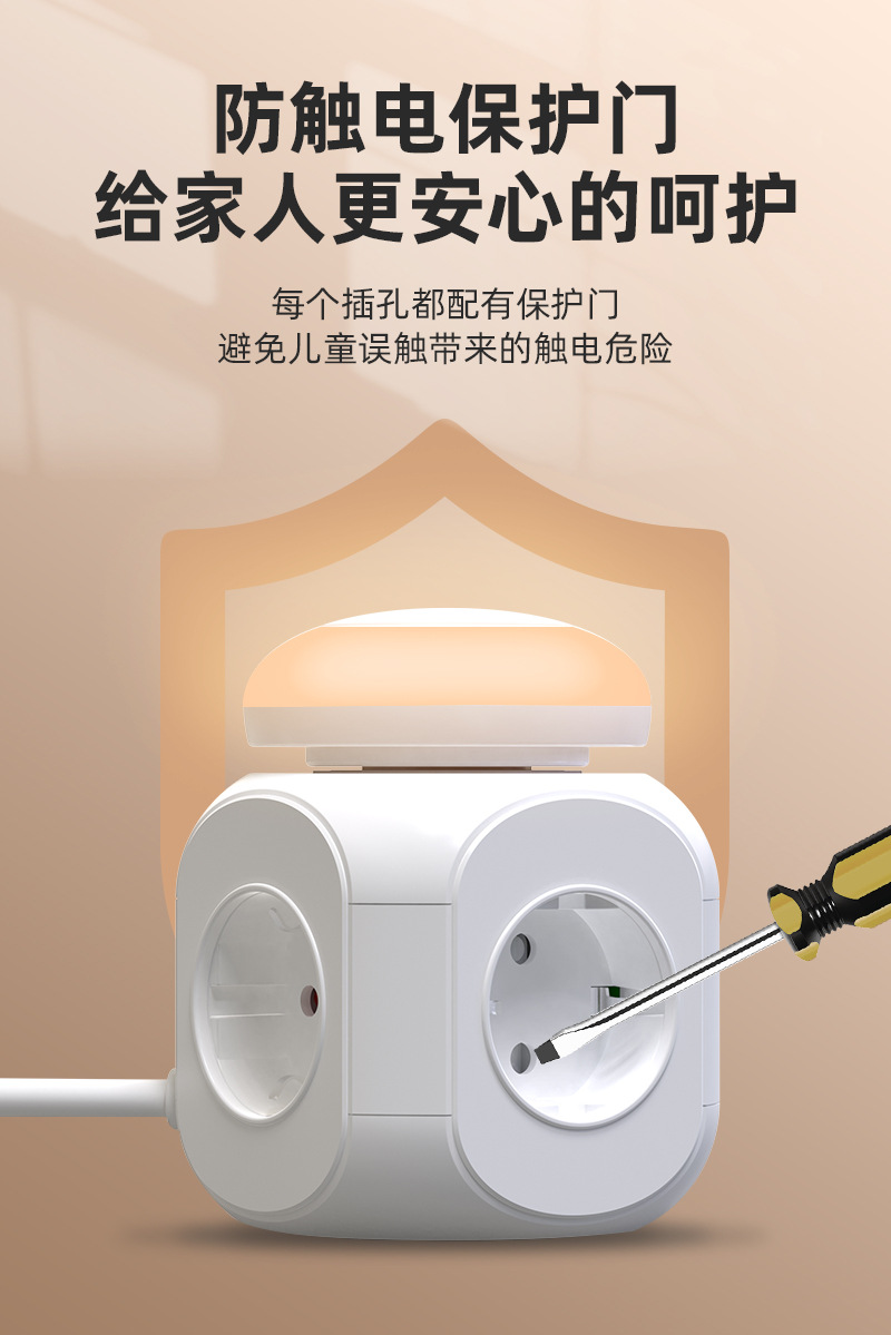 新款欧规小夜灯魔方插座16A接线板欧标排插欧规排插拖线板插排
