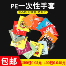 一次性手套食品卡通独立包装创意塑料pe加厚透明手套餐饮龙虾批发