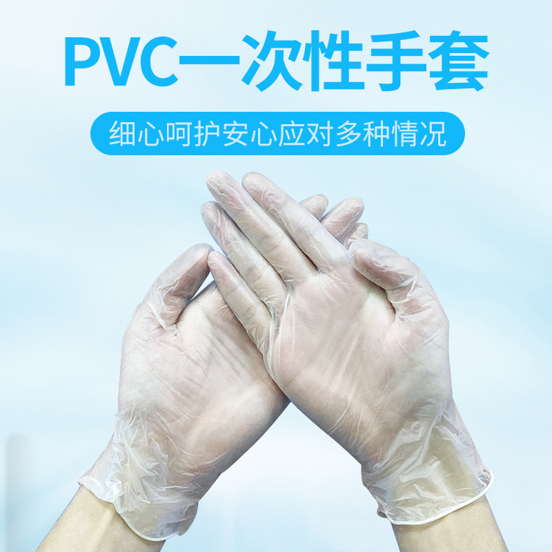 纹绣烘焙一次性PVC手套批发 透明食品级无粉清洁家用手套 100只