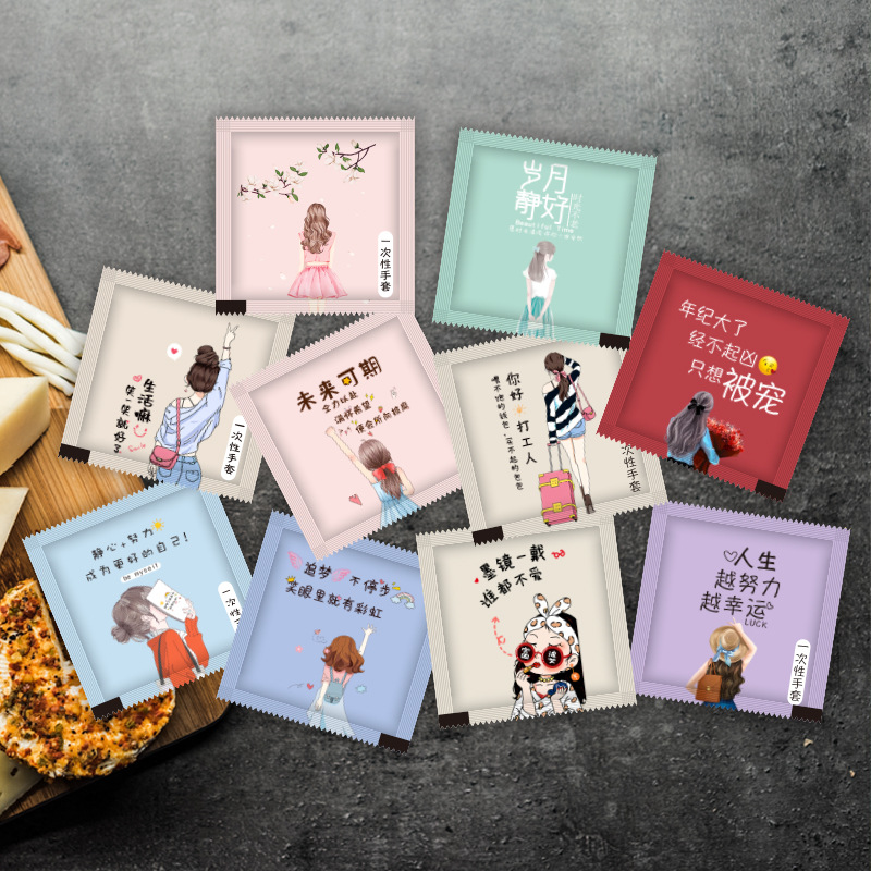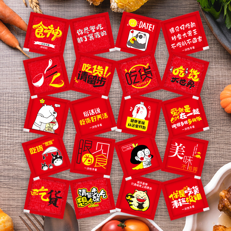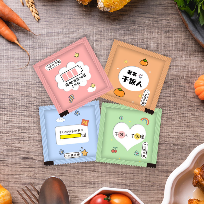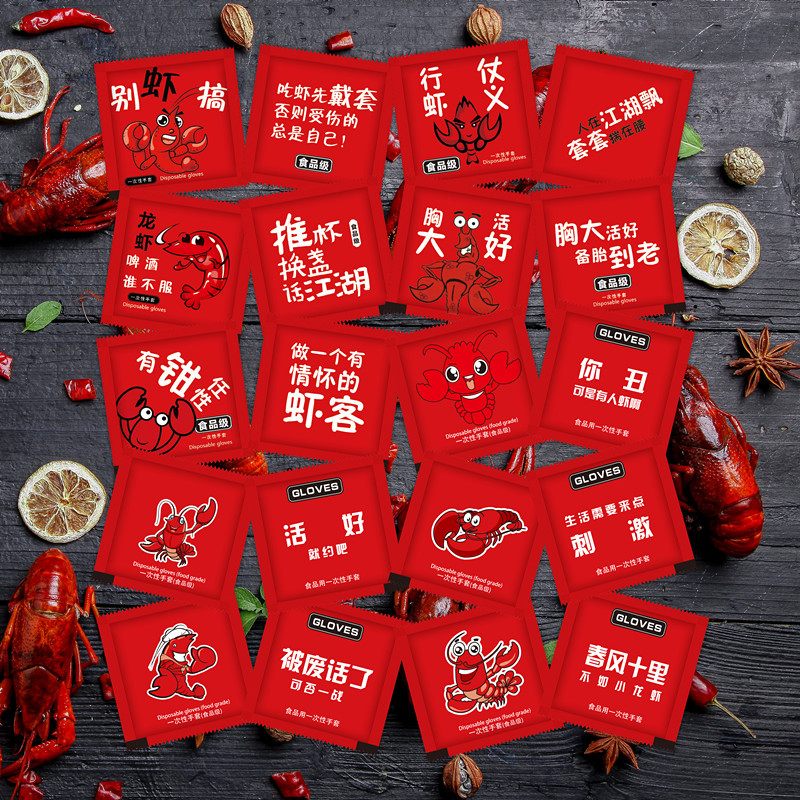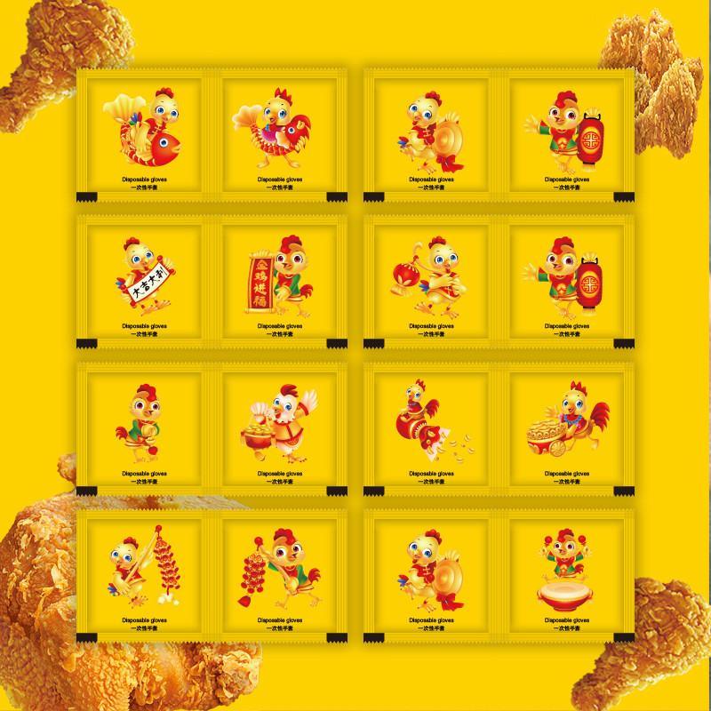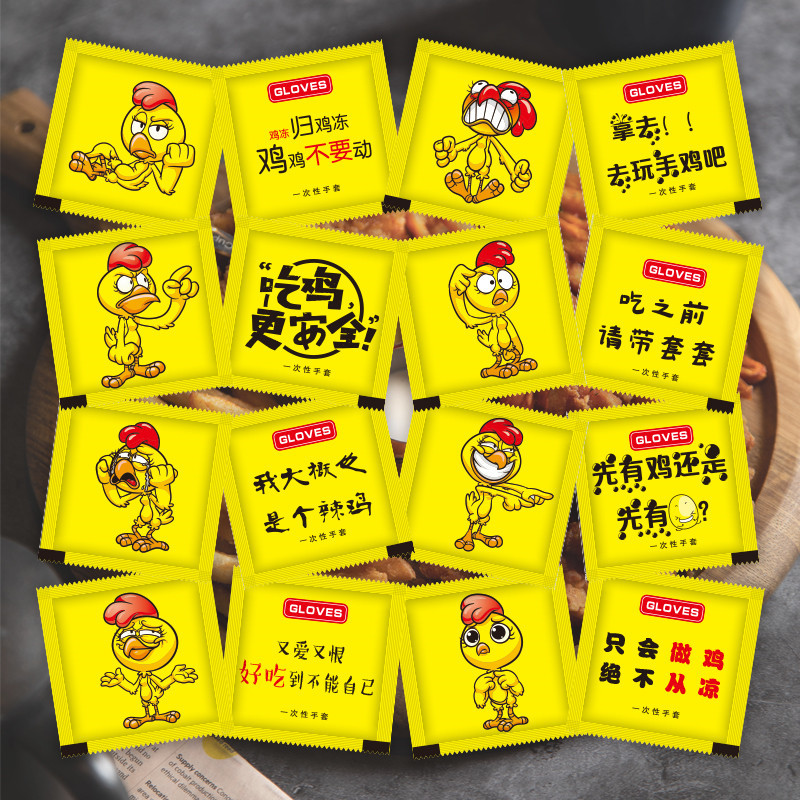 一次性手套独立包装加厚食品餐饮炸鸡龙虾PE手套创意印log