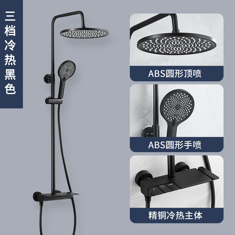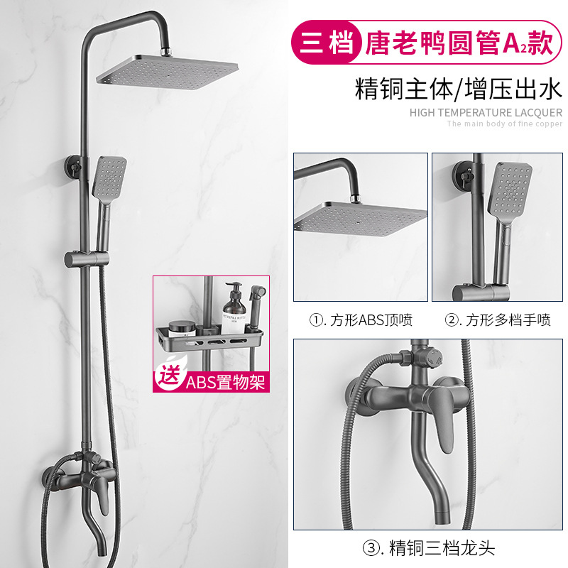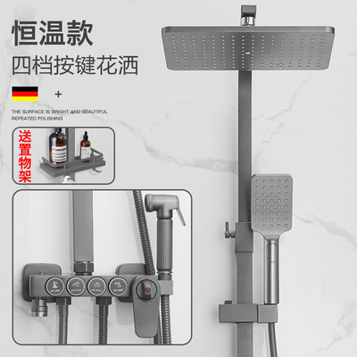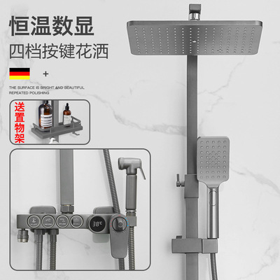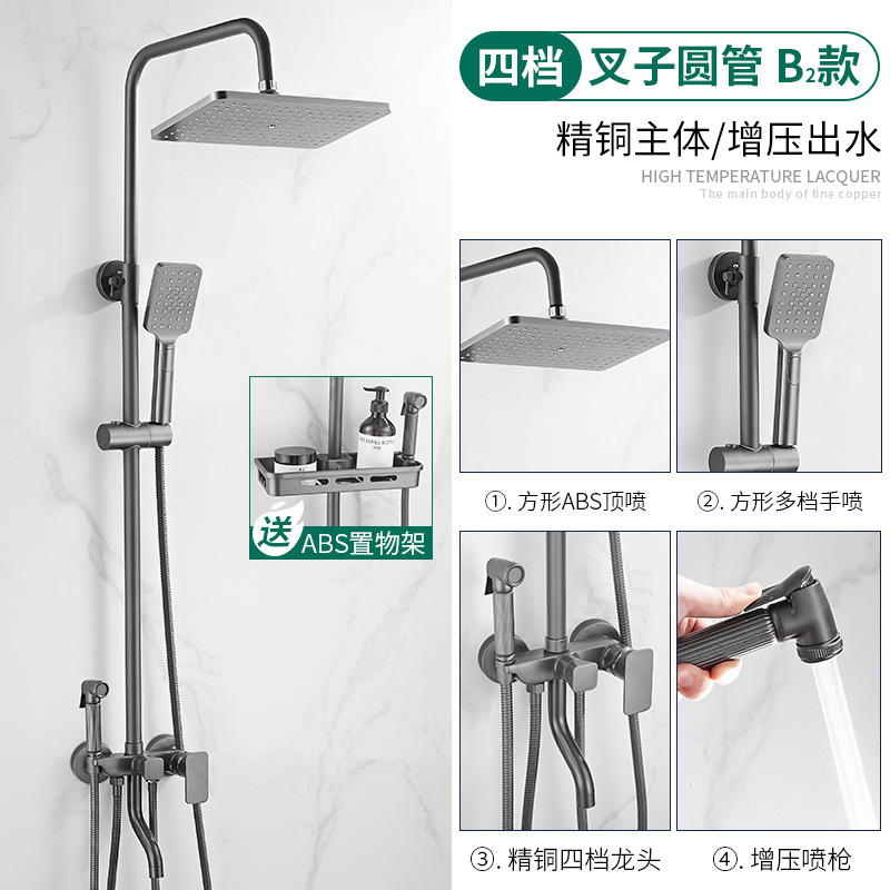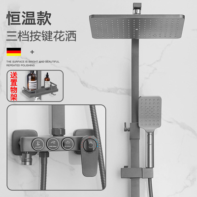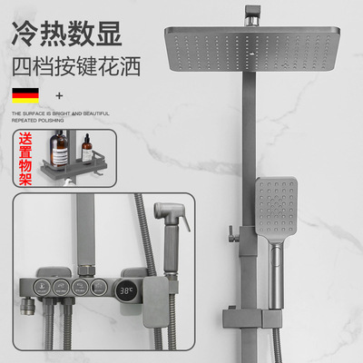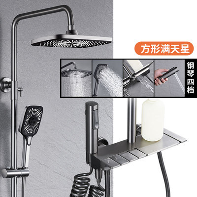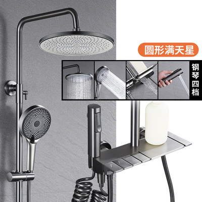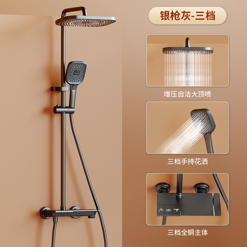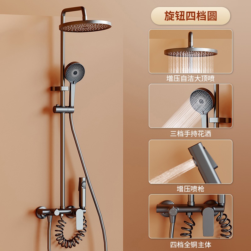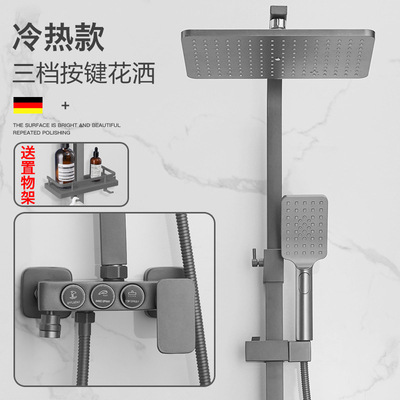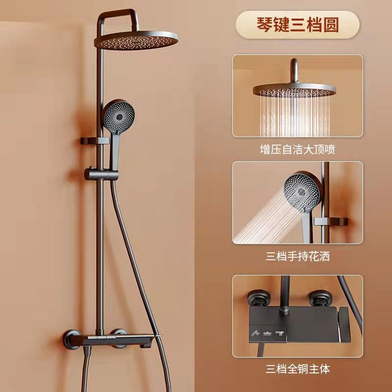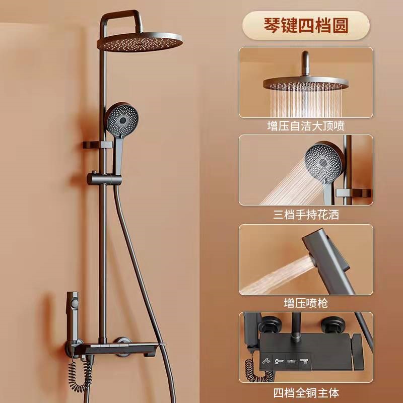 钢琴按键枪灰色明装淋浴花洒套装全铜家用浴室增压淋雨喷头沐浴器