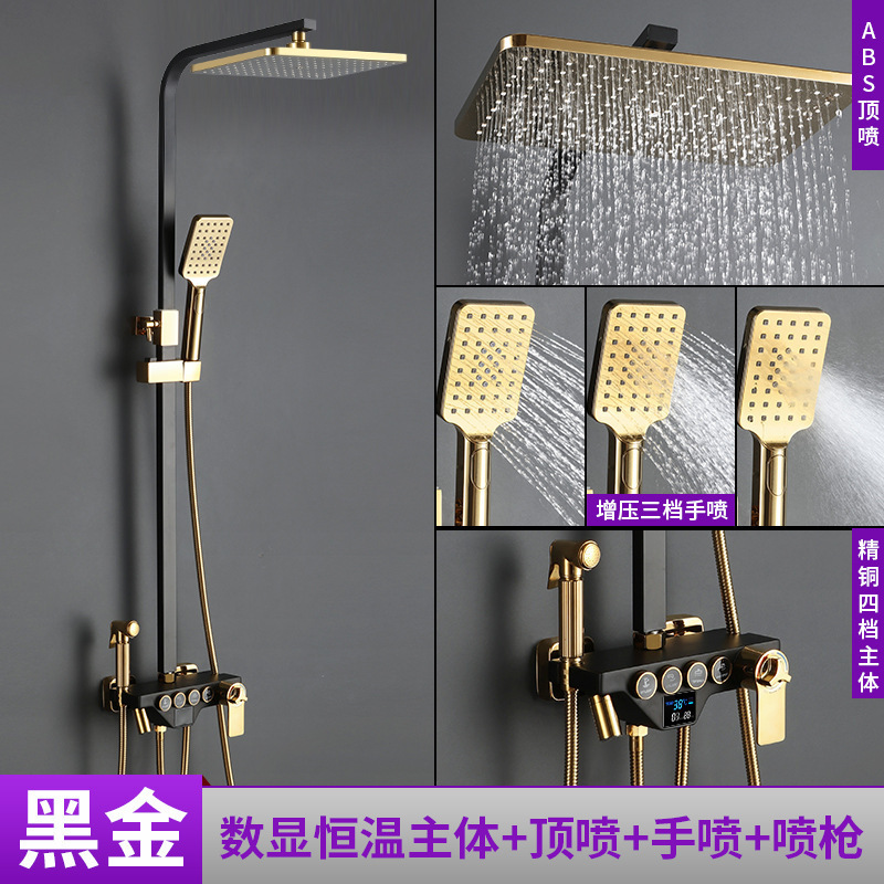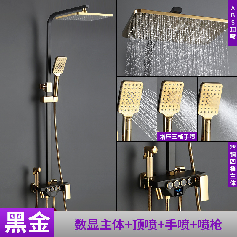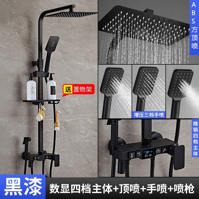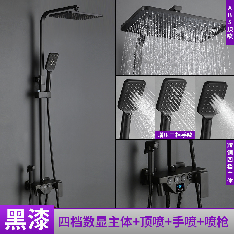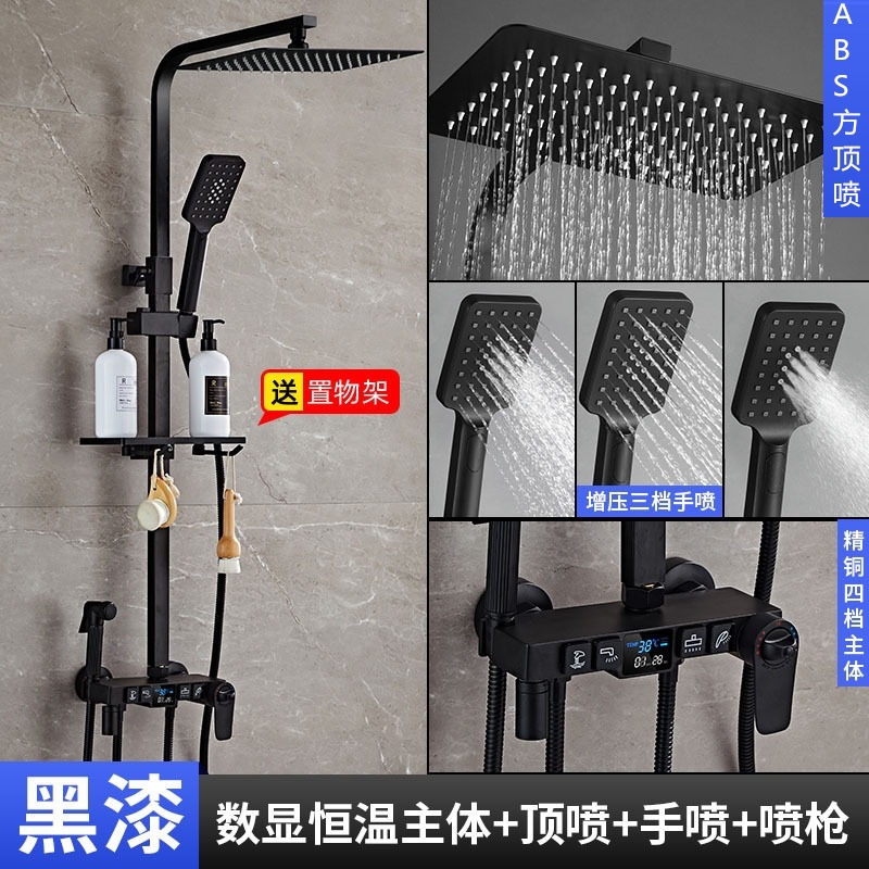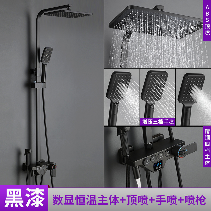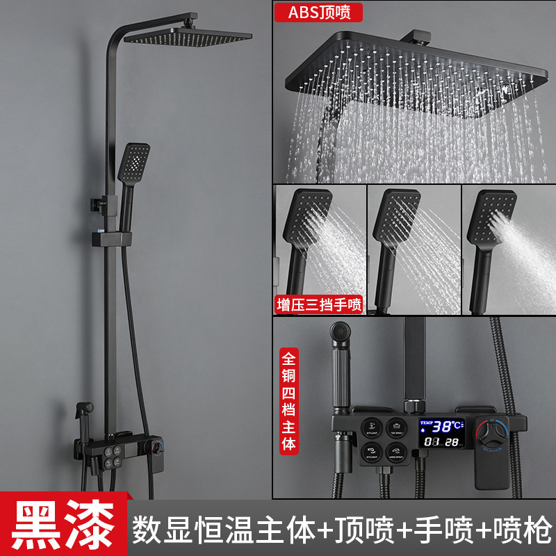 卫生间家用黑色烤漆恒温数显花洒套装全铜主体淋浴器增压喷头批发