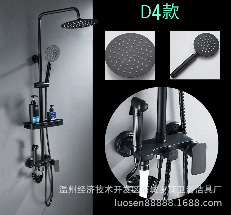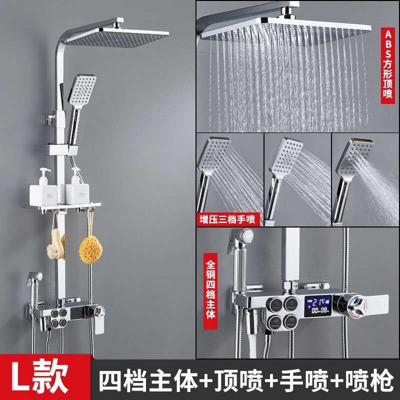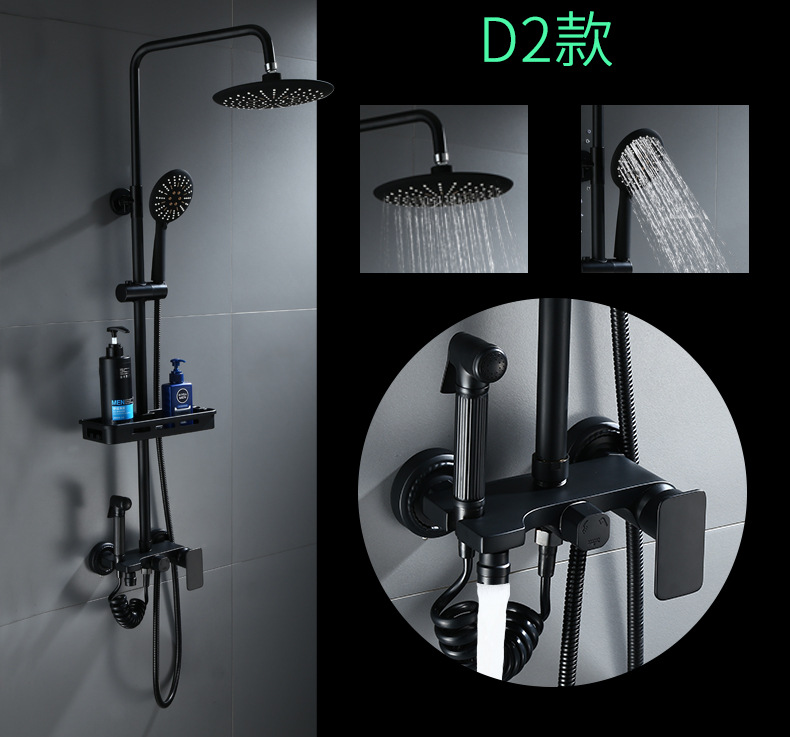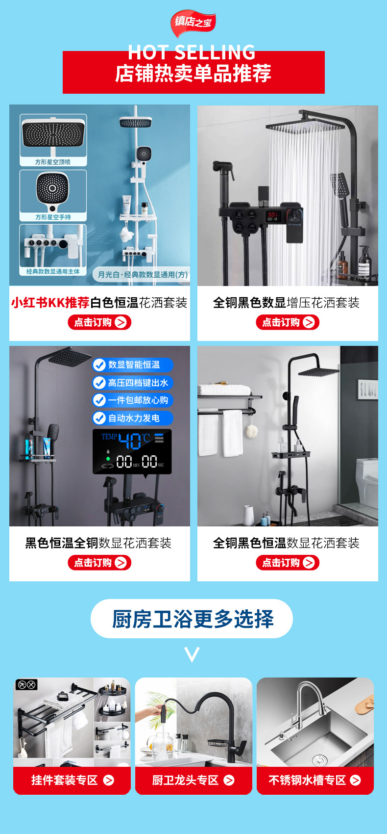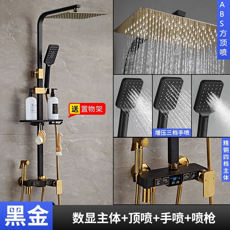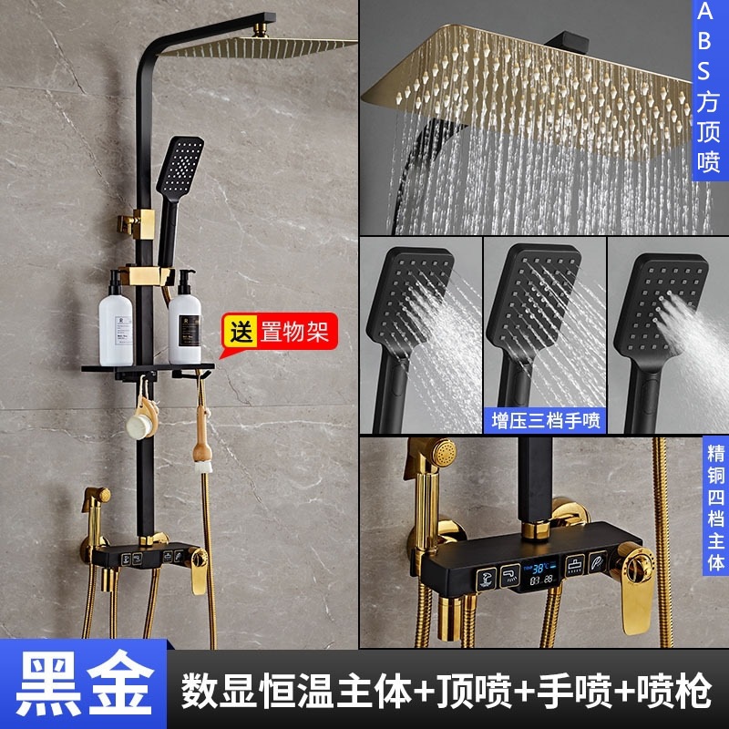 卫生间家用黑色烤漆恒温数显花洒套装全铜主体淋浴器增压喷头批发