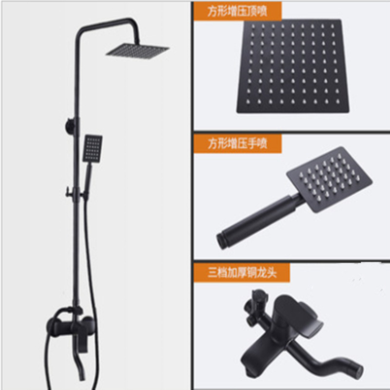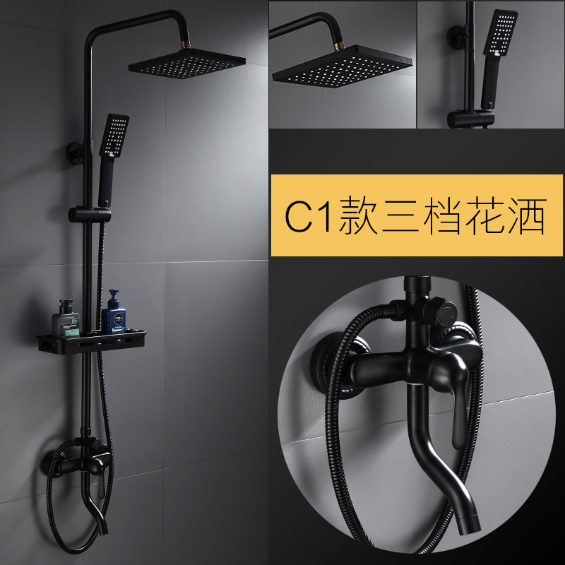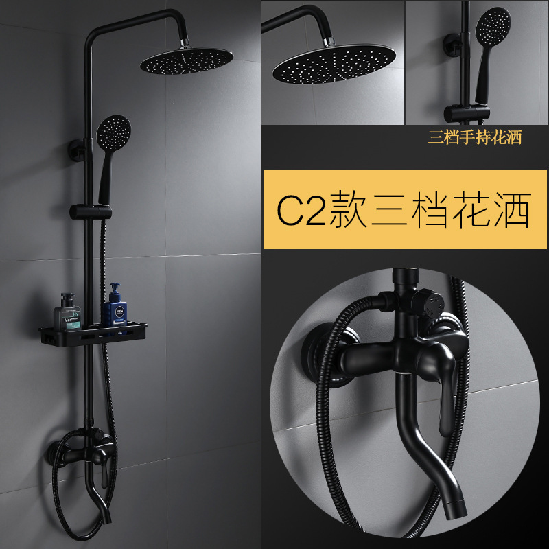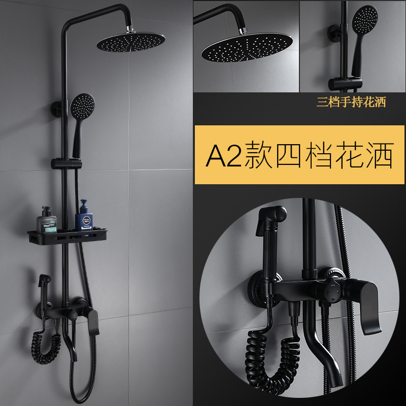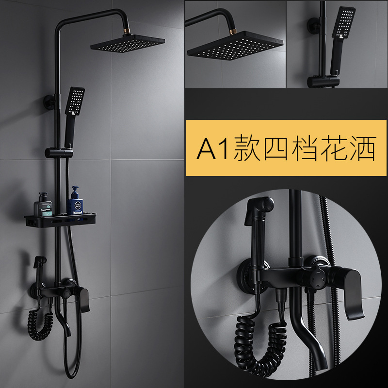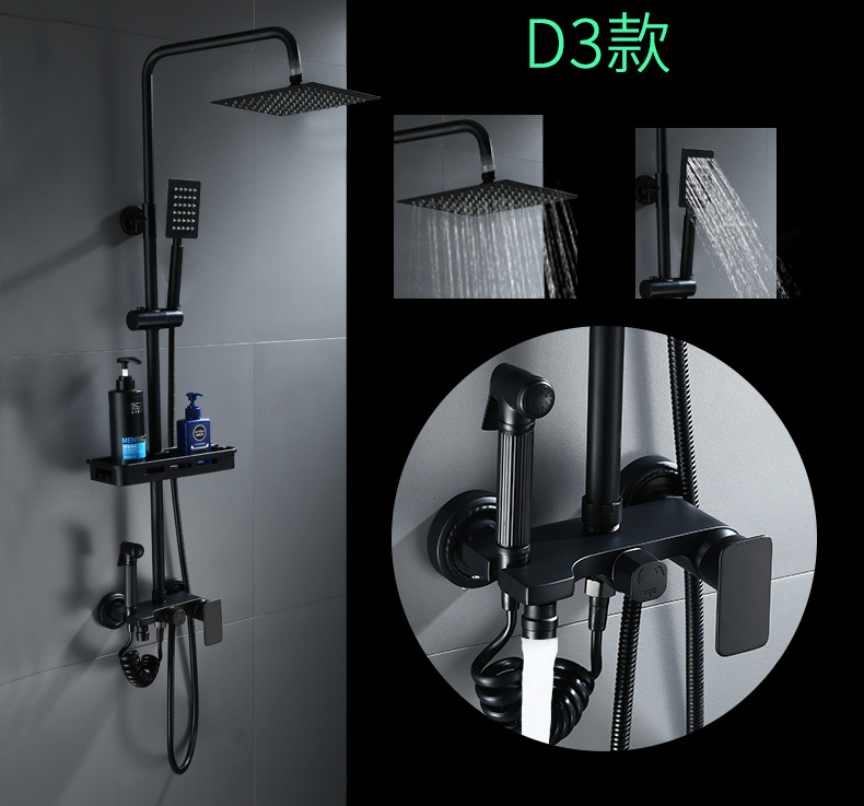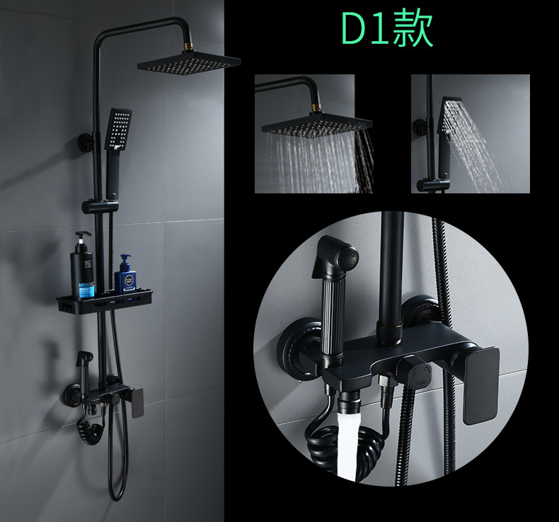 卫生间家用黑色烤漆恒温数显花洒套装全铜主体淋浴器增压喷头批发