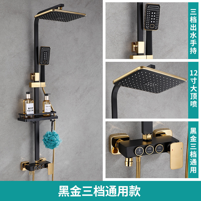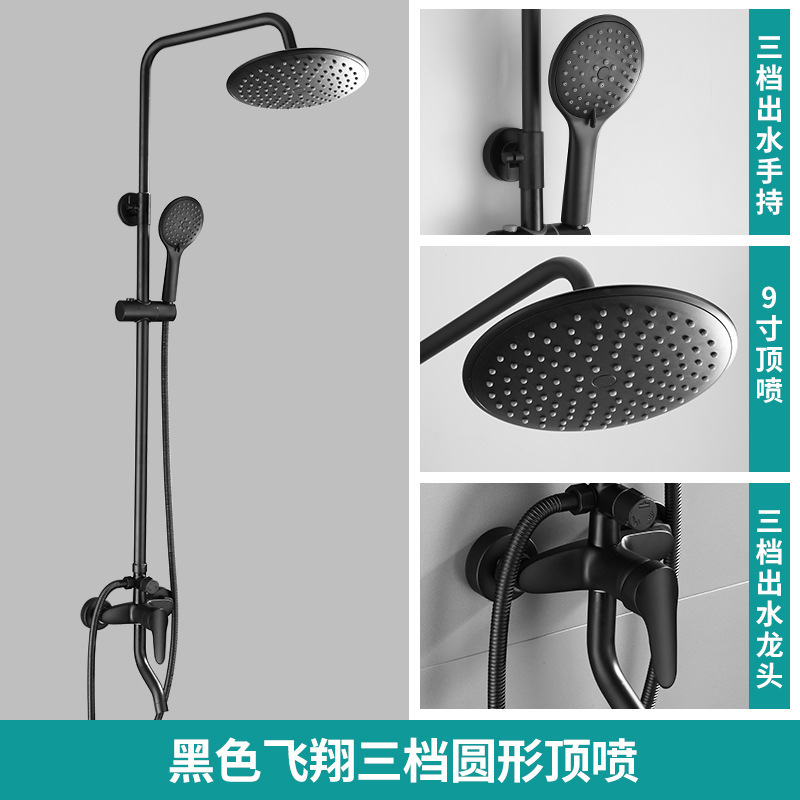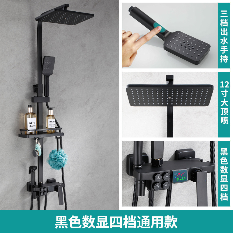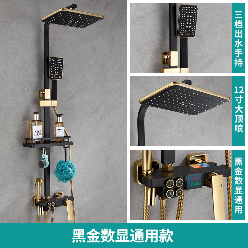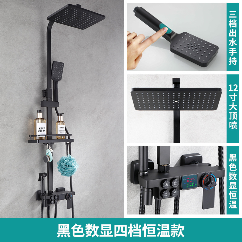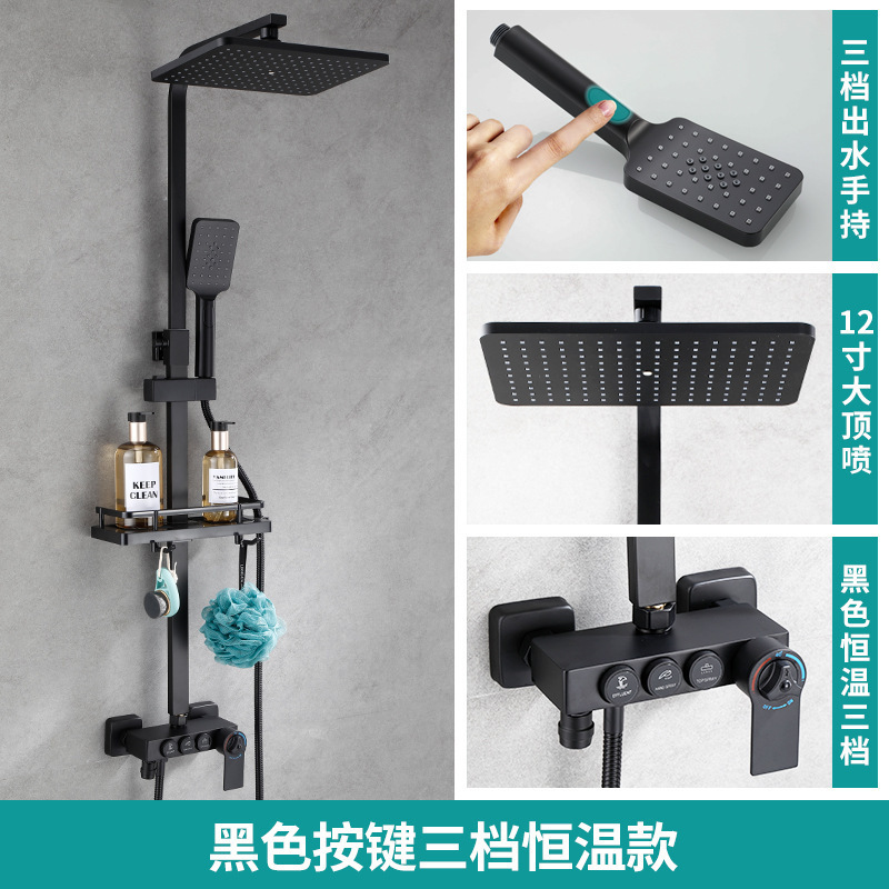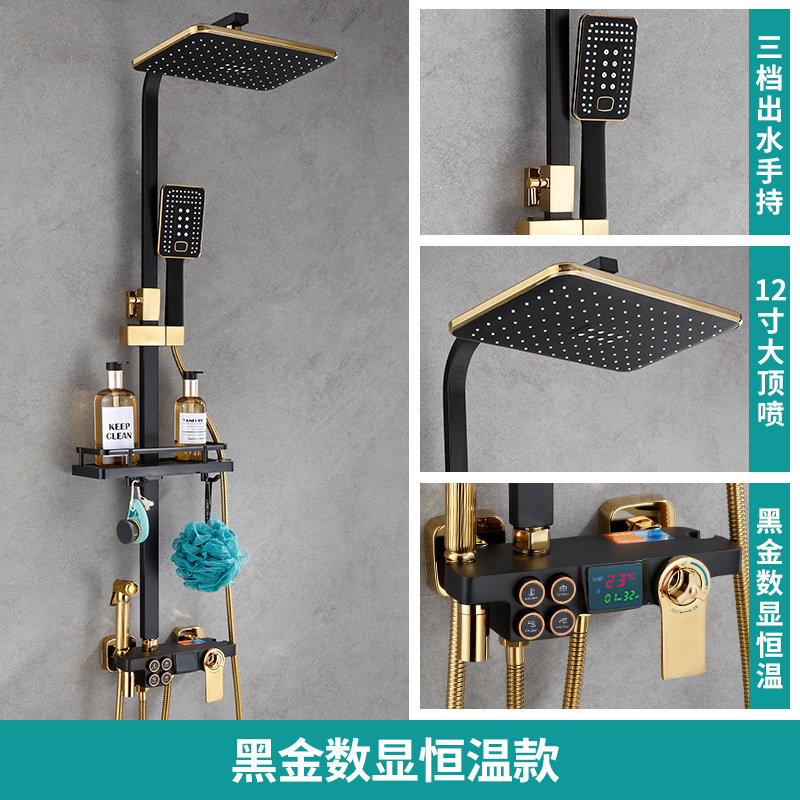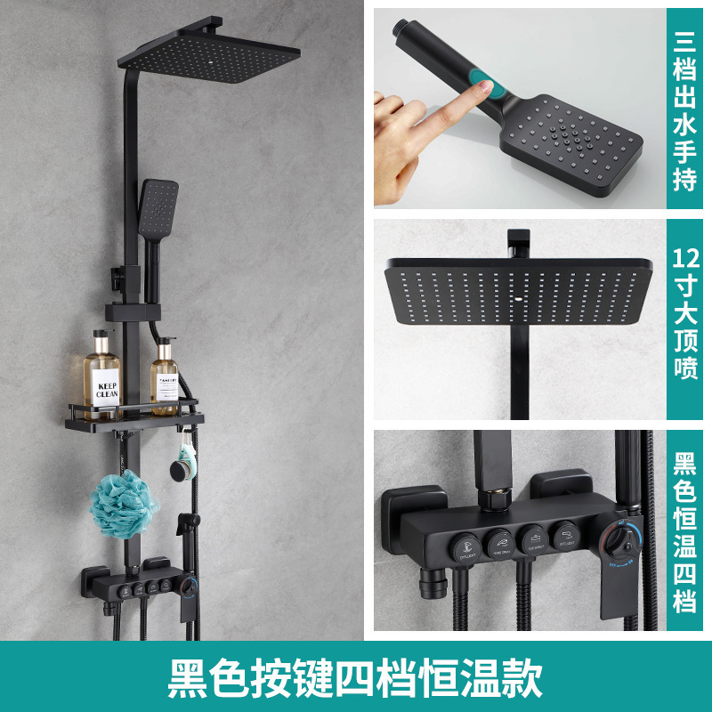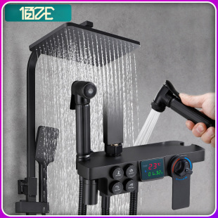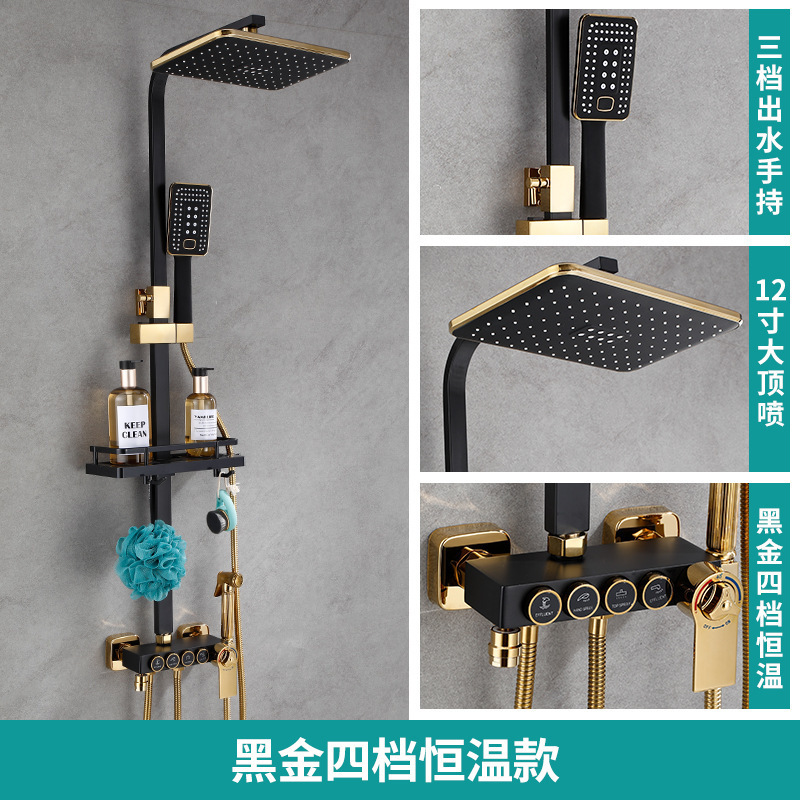 佰亿仑浴室淋浴花洒 批发家用恒温淋浴器 铜黑色淋雨花洒喷头套装