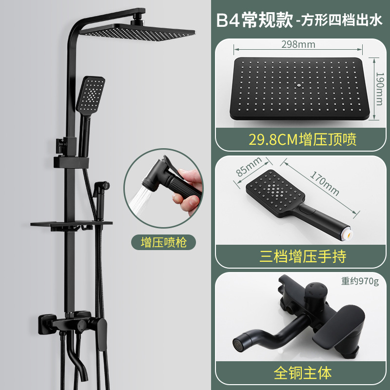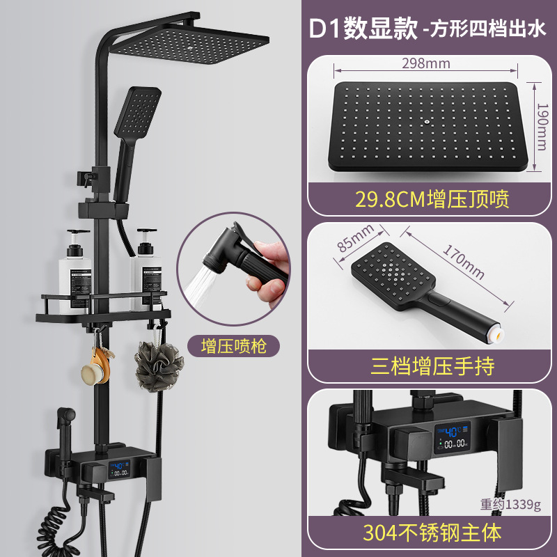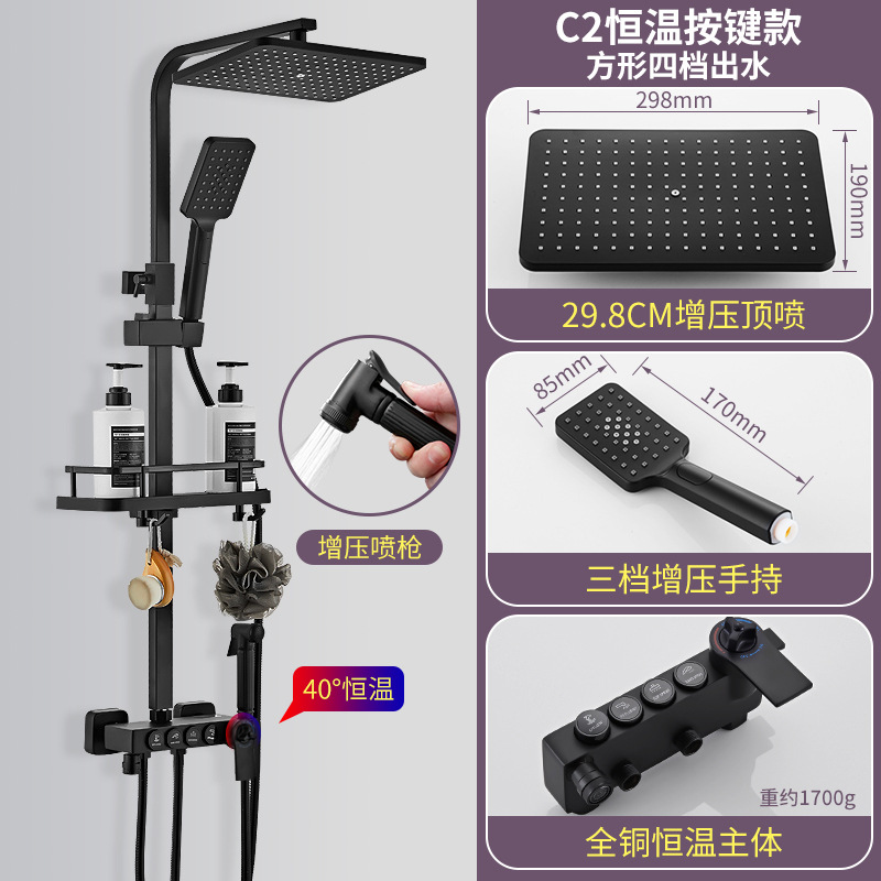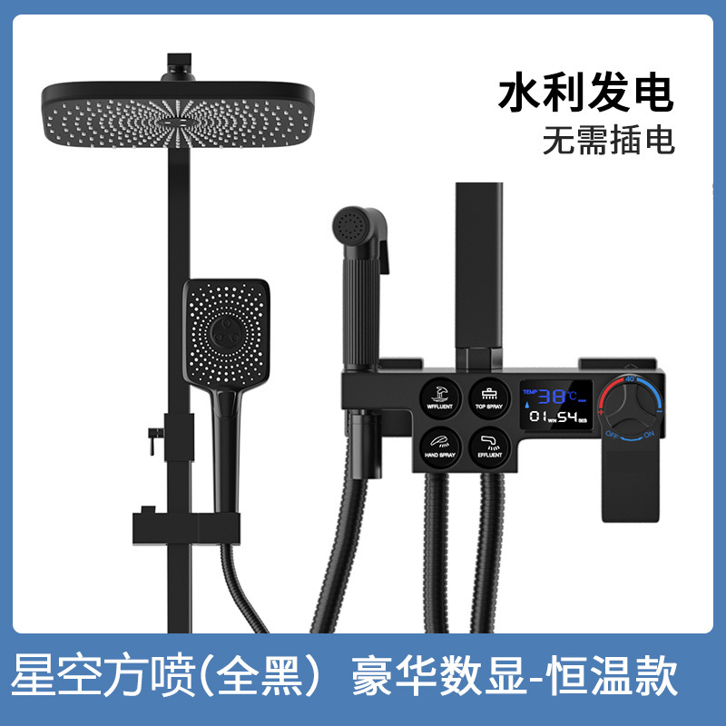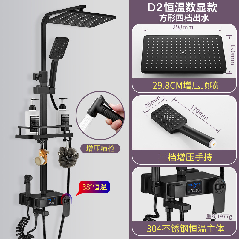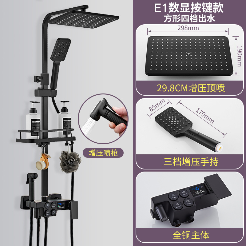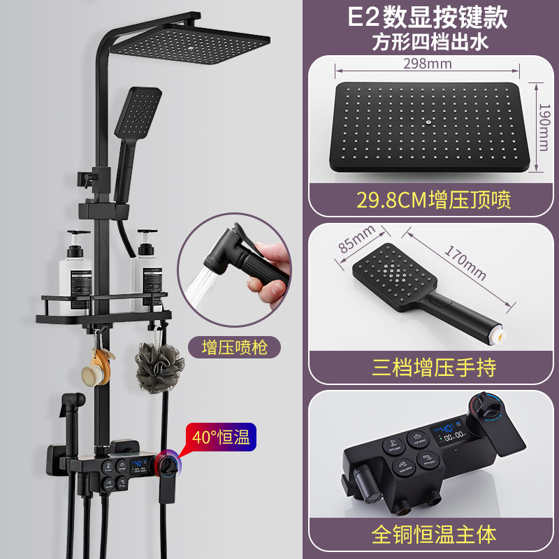 led黑色恒温淋浴花洒全套全铜浴室沐浴花洒套装家用淋雨卫浴龙头