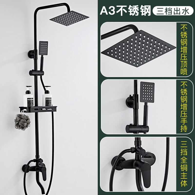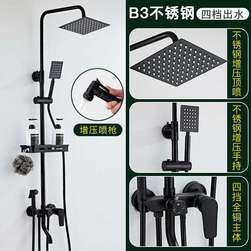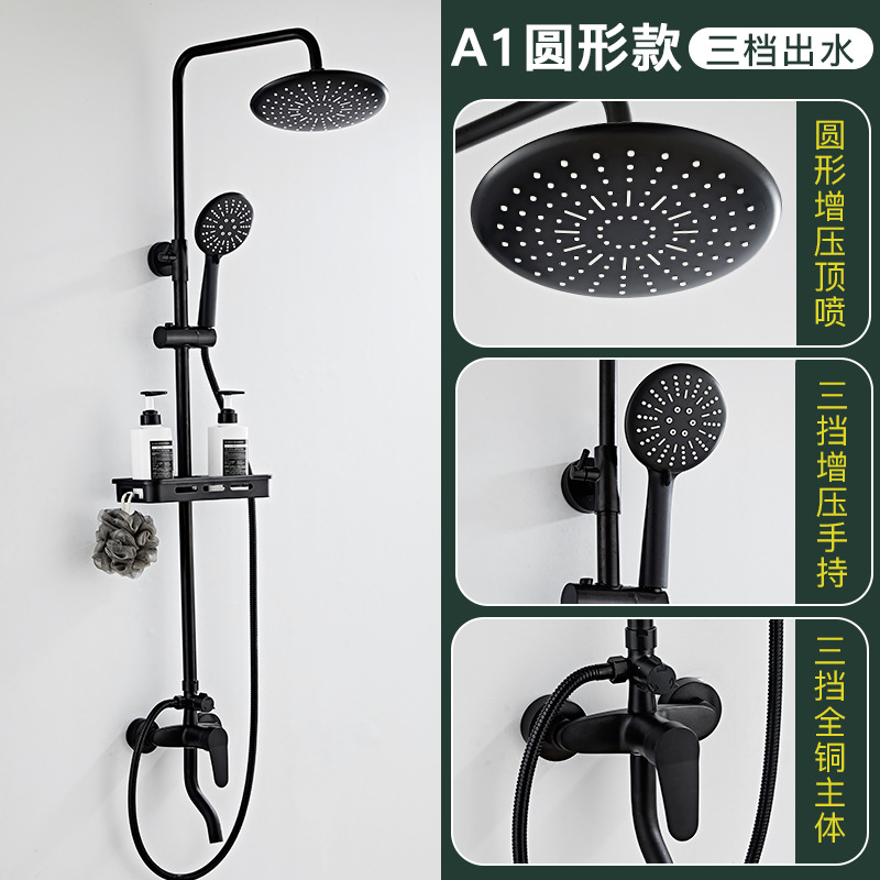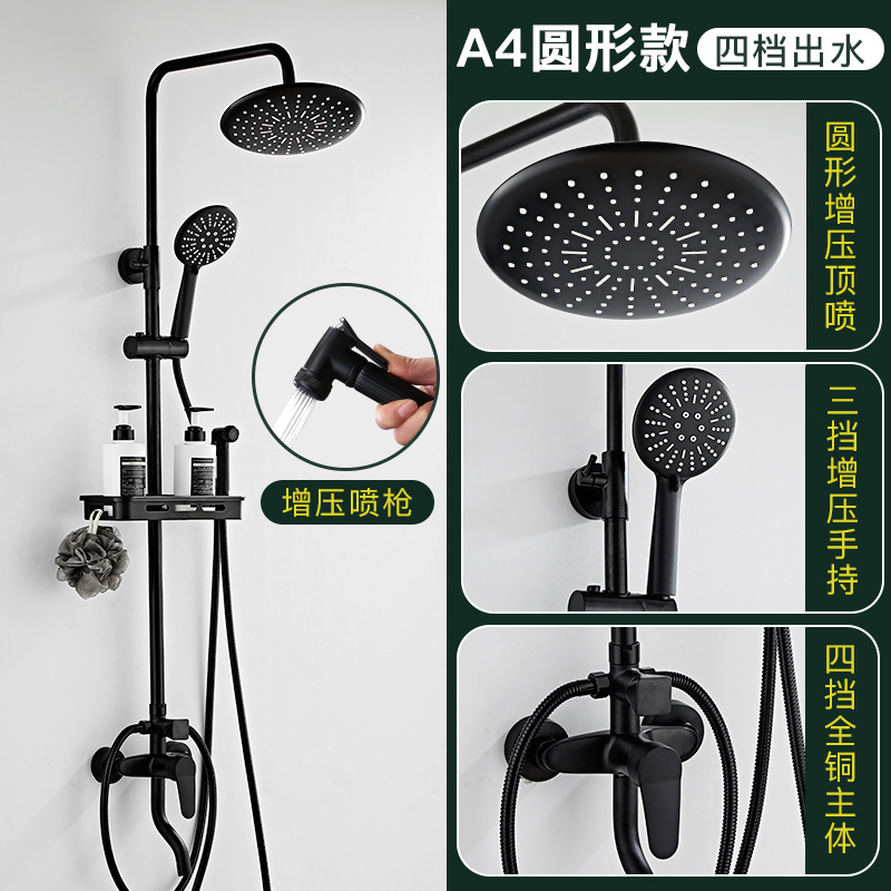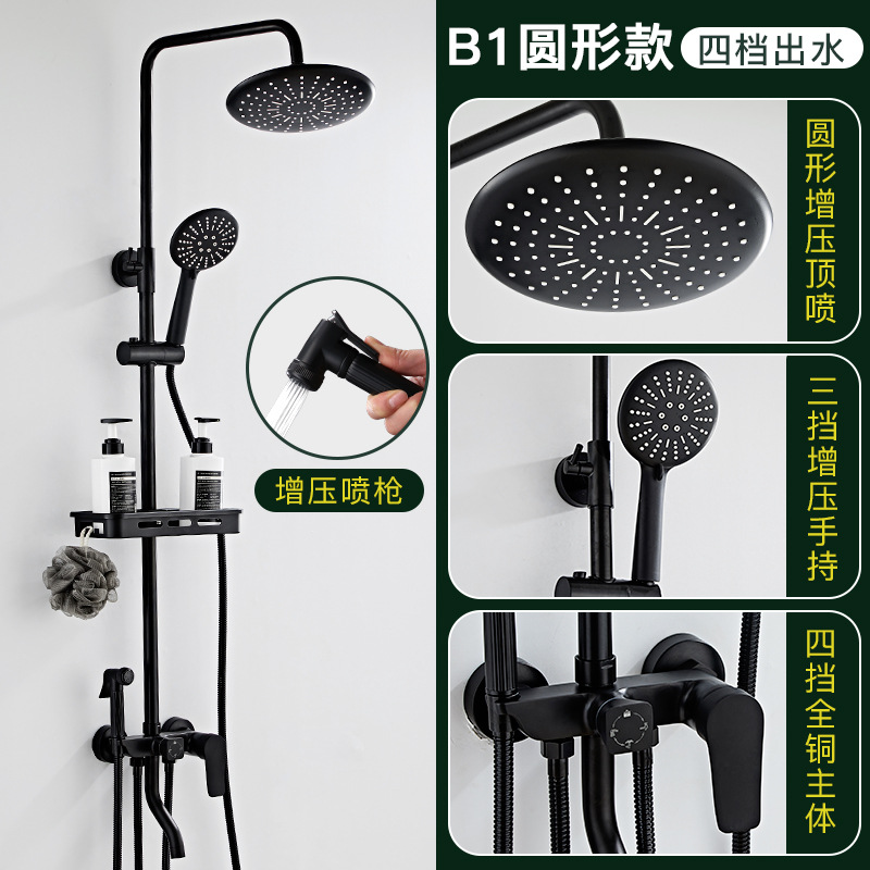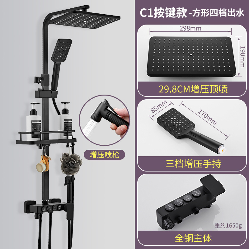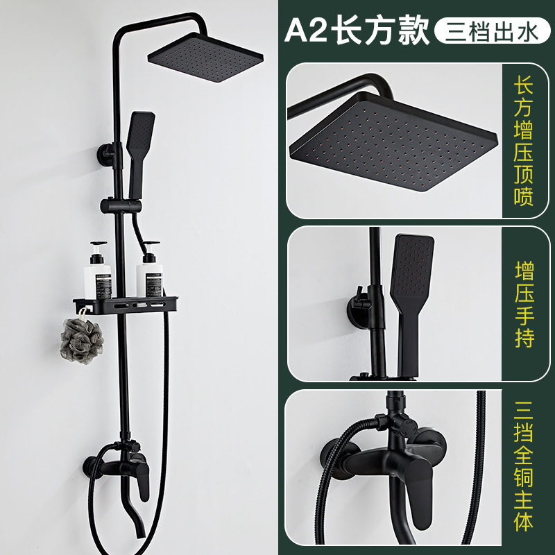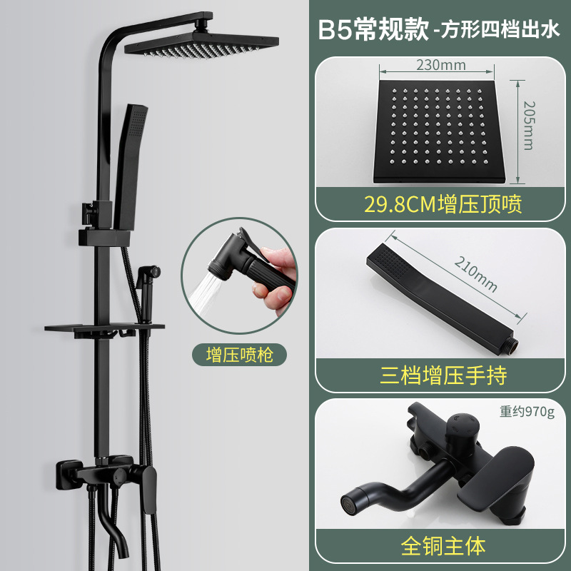 led黑色恒温淋浴花洒全套全铜浴室沐浴花洒套装家用淋雨卫浴龙头