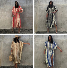 跨境爆款欧美人棉印花沙滩罩衫长袍式度假防晒衫比基尼罩衫-22色
