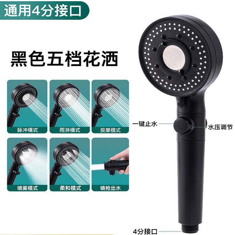 增压花洒套装负离子淋雨喷头防堵手持黑色五档沐浴器莲蓬头批发