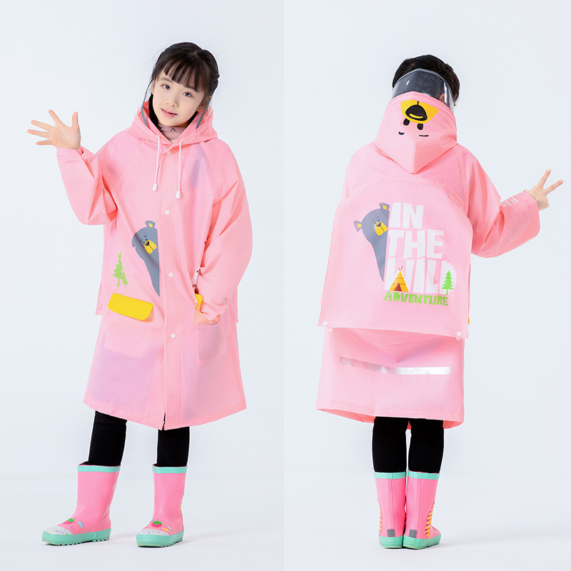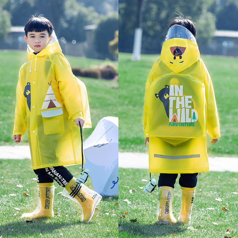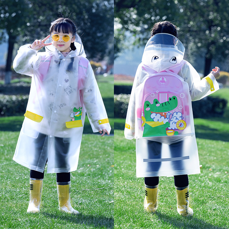 EVA儿童雨衣 非一次性卡通带书包位连体雨衣儿童学生户外徒步雨衣