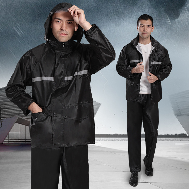加厚牛津布黑色劳保分体式雨衣雨裤套装成人执勤骑行双层反光雨衣