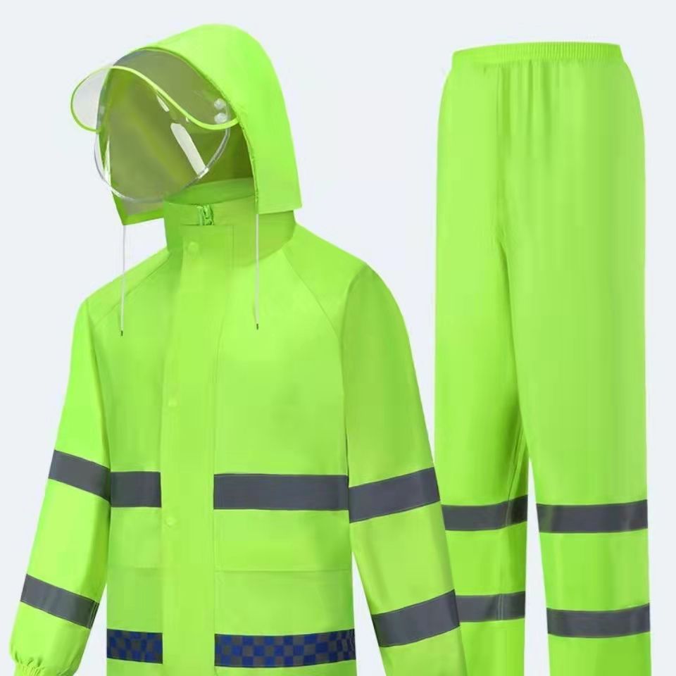执勤反光雨衣雨裤套装新式交通防护罩分体式男防水反光骑行荧光绿