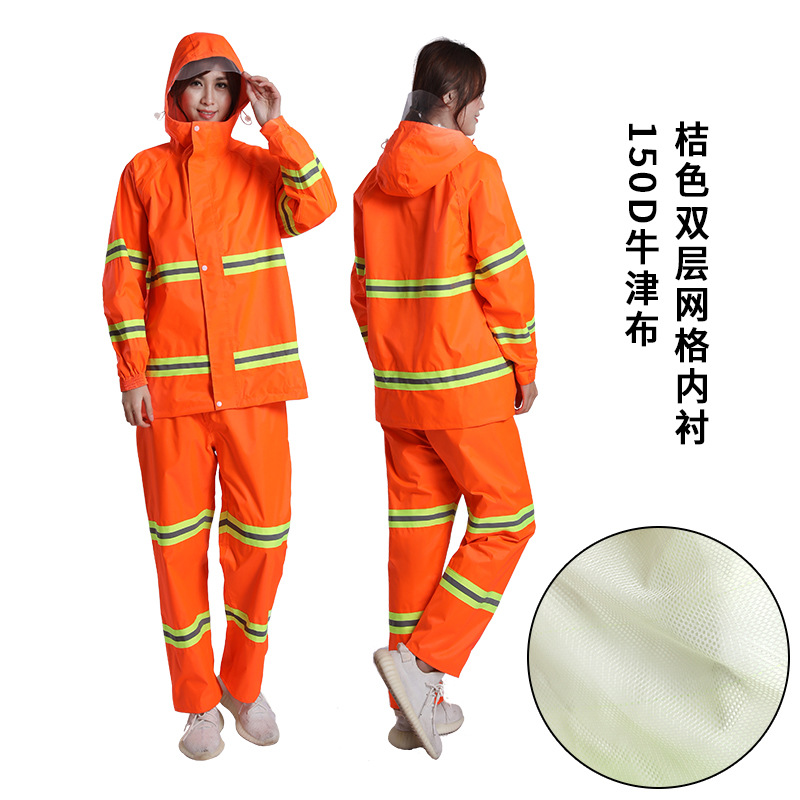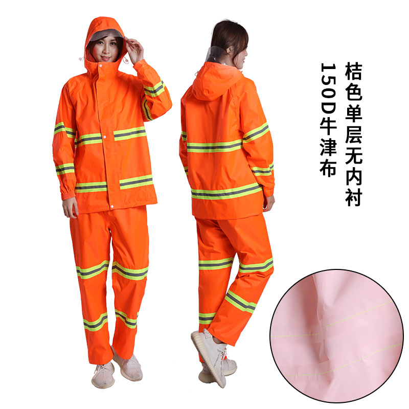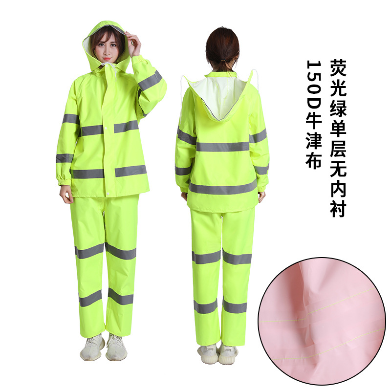 加厚牛津布分体式反光雨衣套装荧光绿桔色环卫劳保执勤雨衣批发