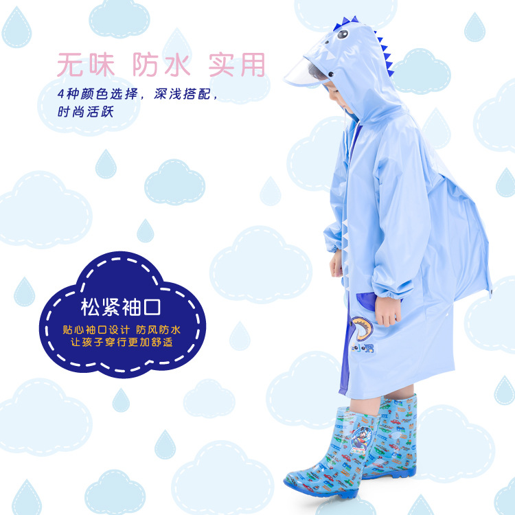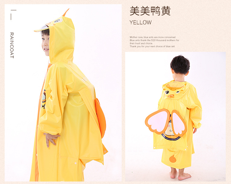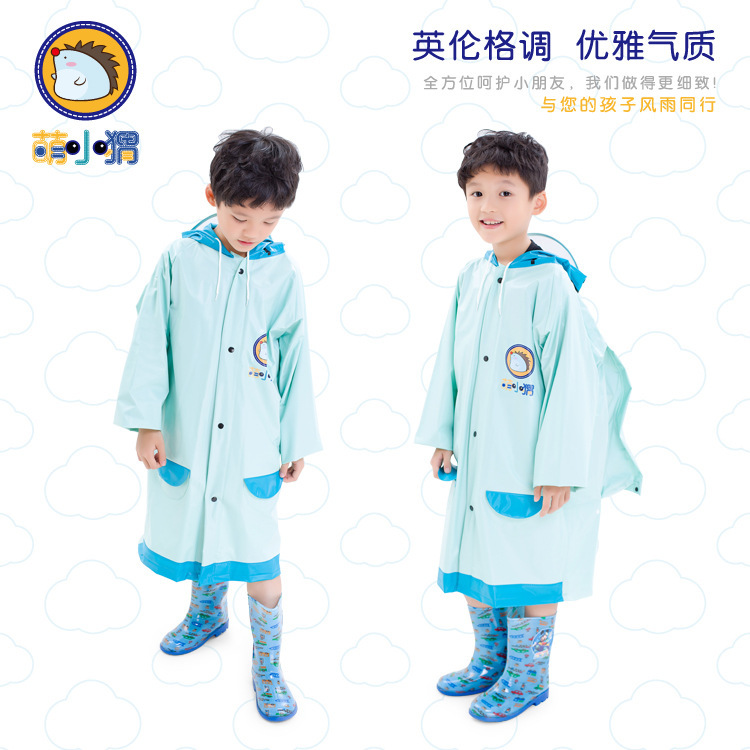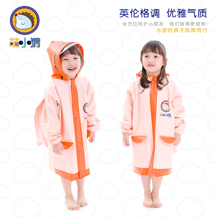 【可加印LOGO】萌小猬书包位大帽檐带反光条的立体造型儿童雨衣