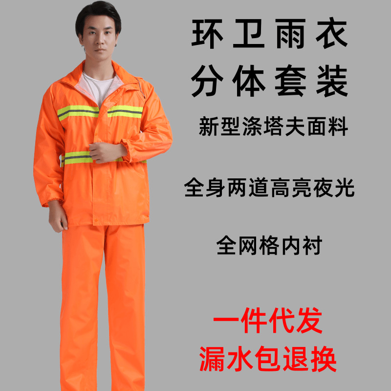环卫雨衣雨裤分体套装批发双层加厚橘红色反光环卫工作成人雨衣