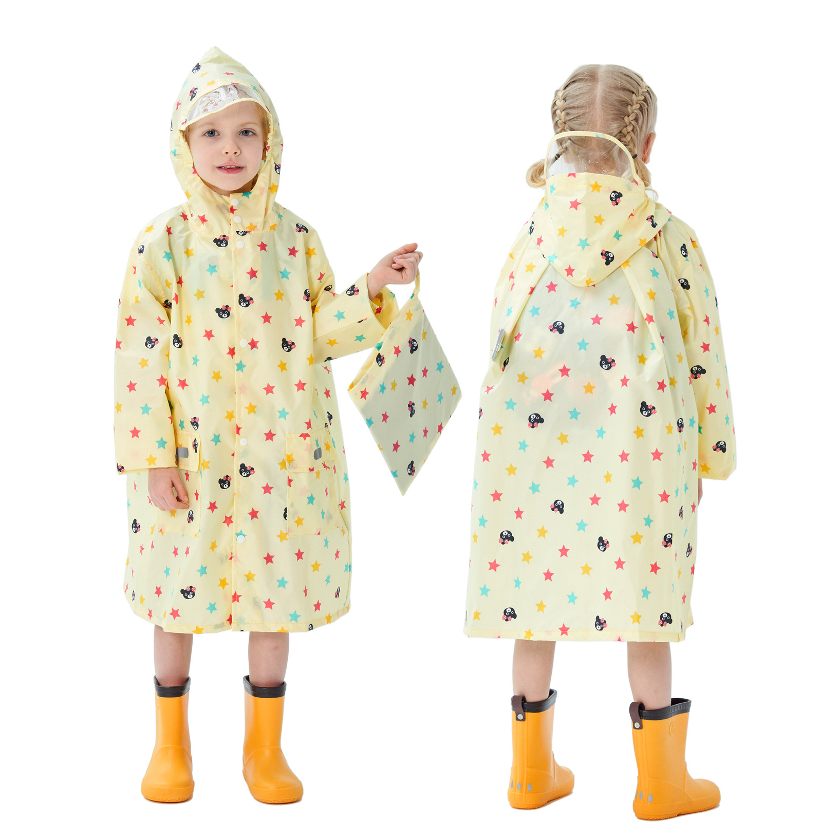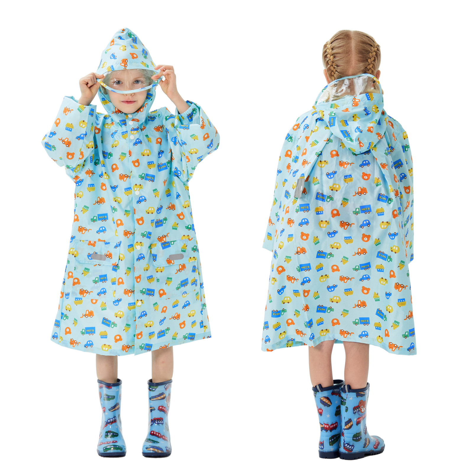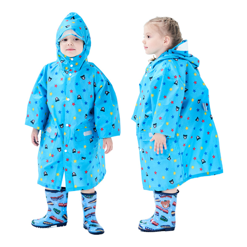 2.后背搭扣设计有隐藏加宽设计,可以加宽尺寸或者修身,小朋友背书包也可以宽松穿着,书包也不会淋湿;