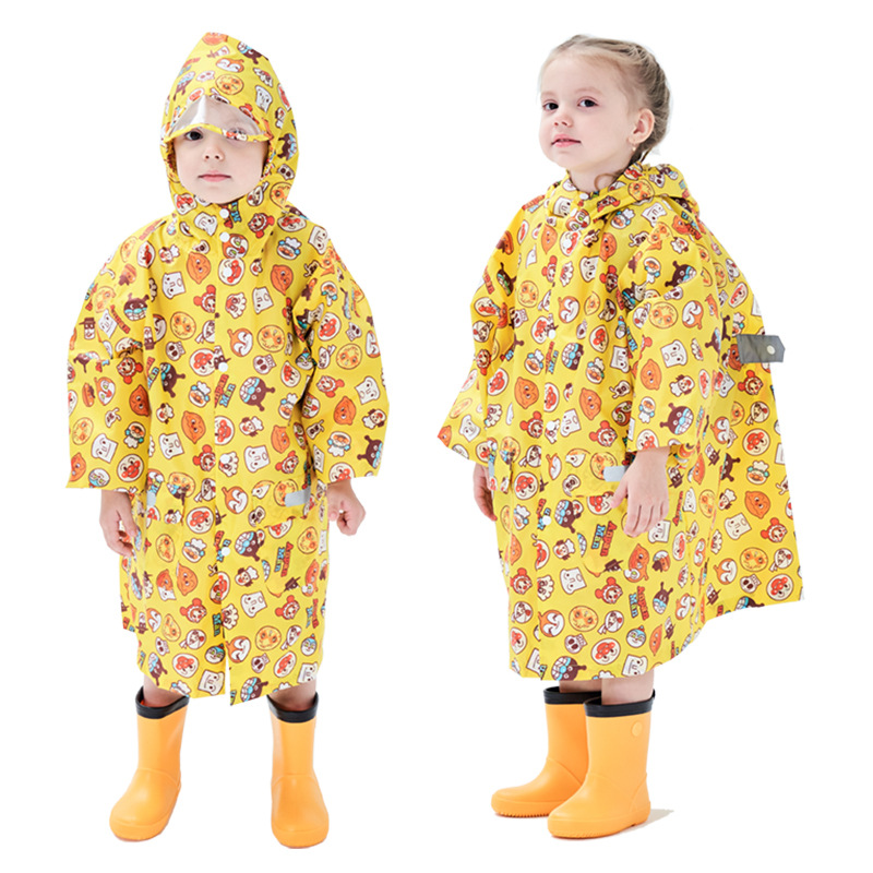 儿童雨衣套装男女宝宝幼儿分体卡通带书包长款面包超人反光雨披具