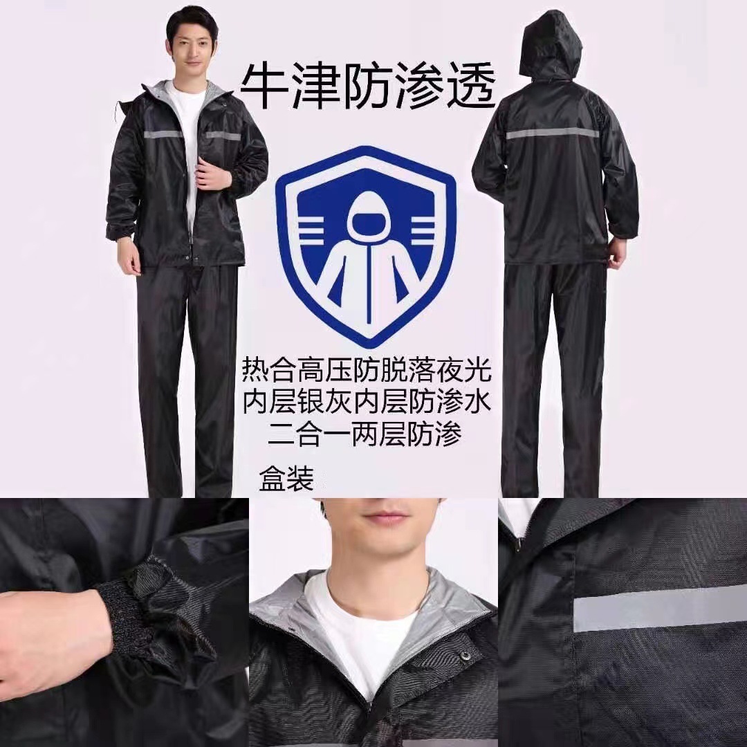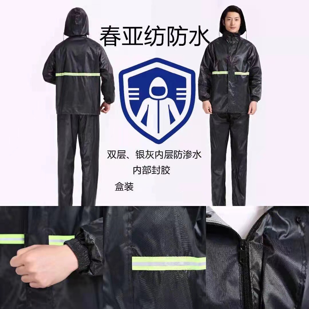 雨衣雨披防暴雨路政保安工地路政通勤黑色工作服反光分体雨衣套装
