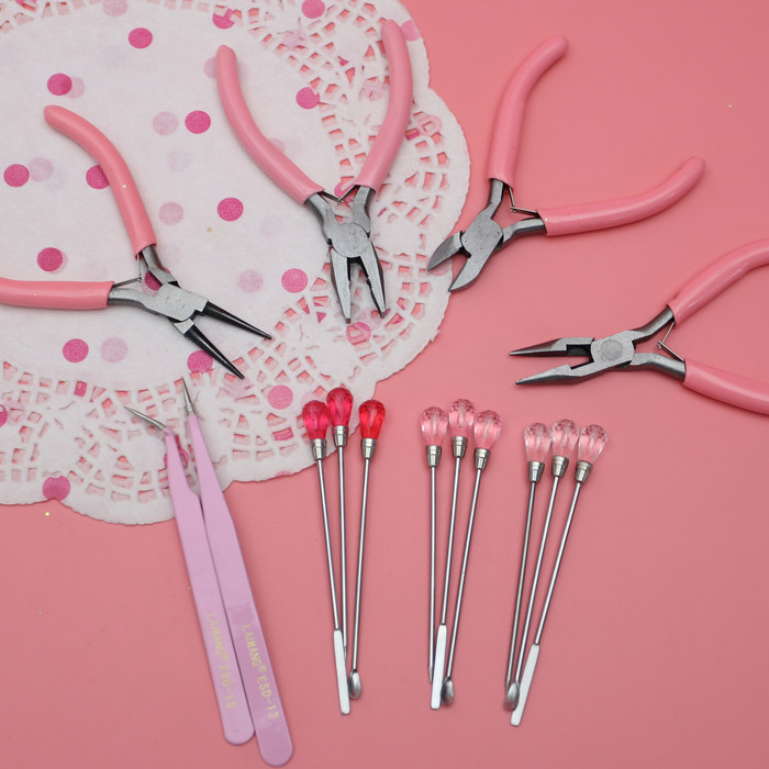 粉色水晶滴胶UV胶工具 挖粉勺 搅拌棒 戳泡针钳子镊子DIY手工材料