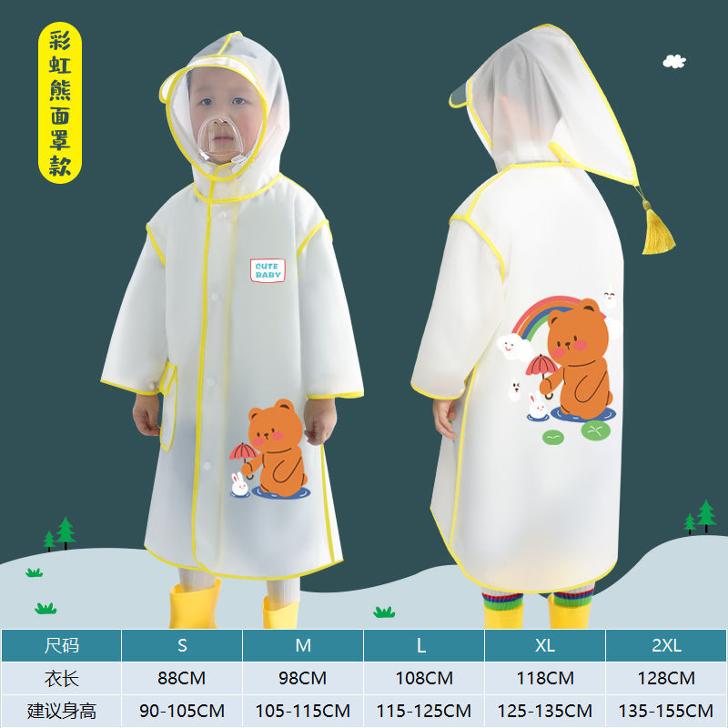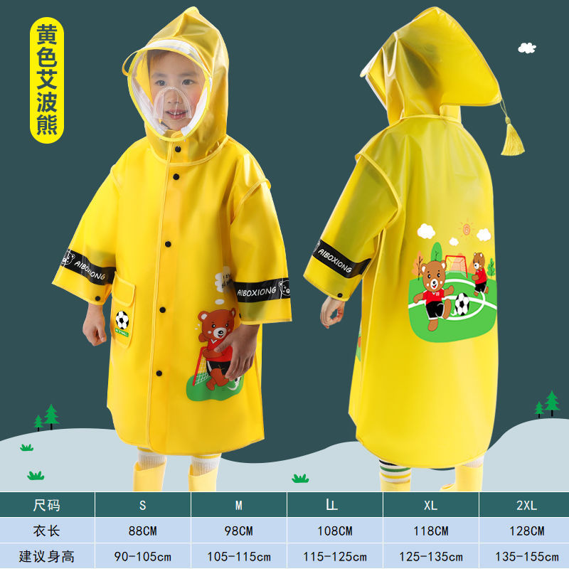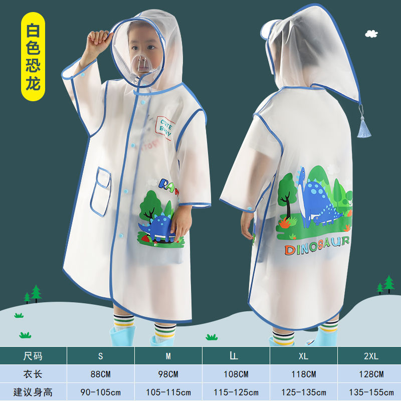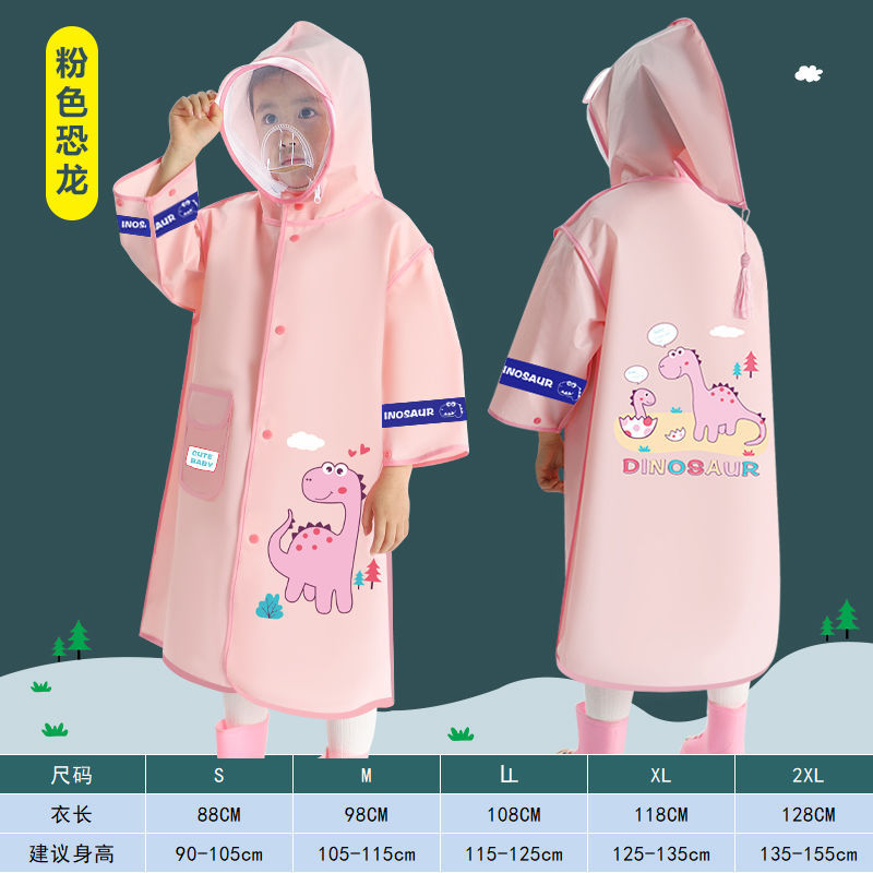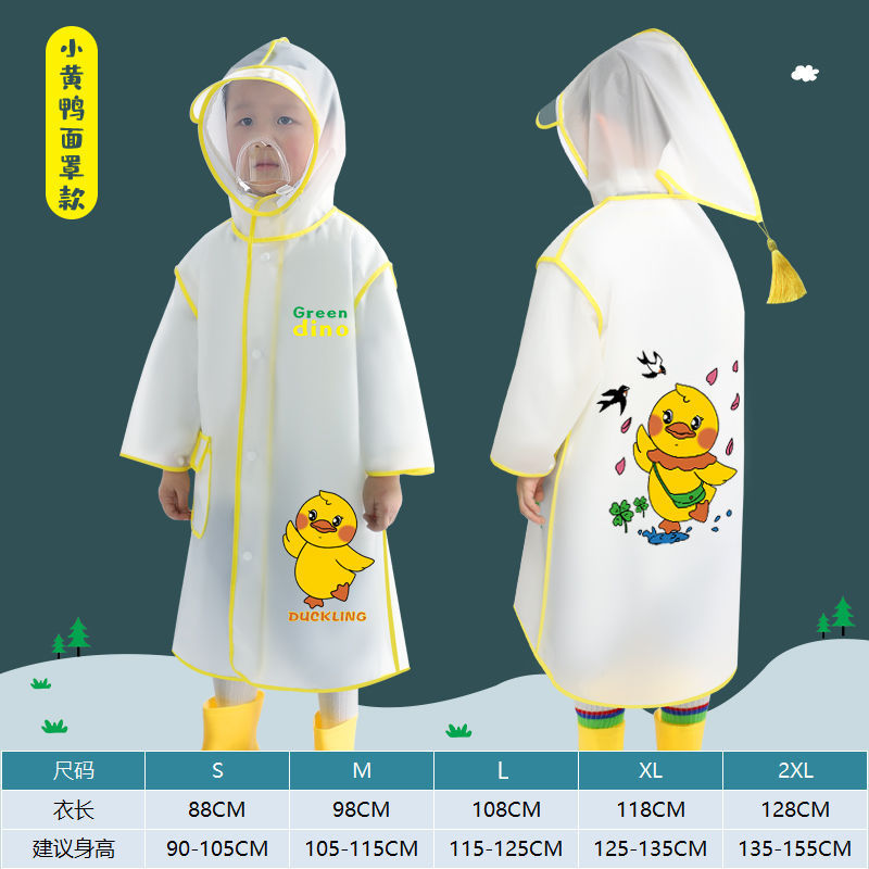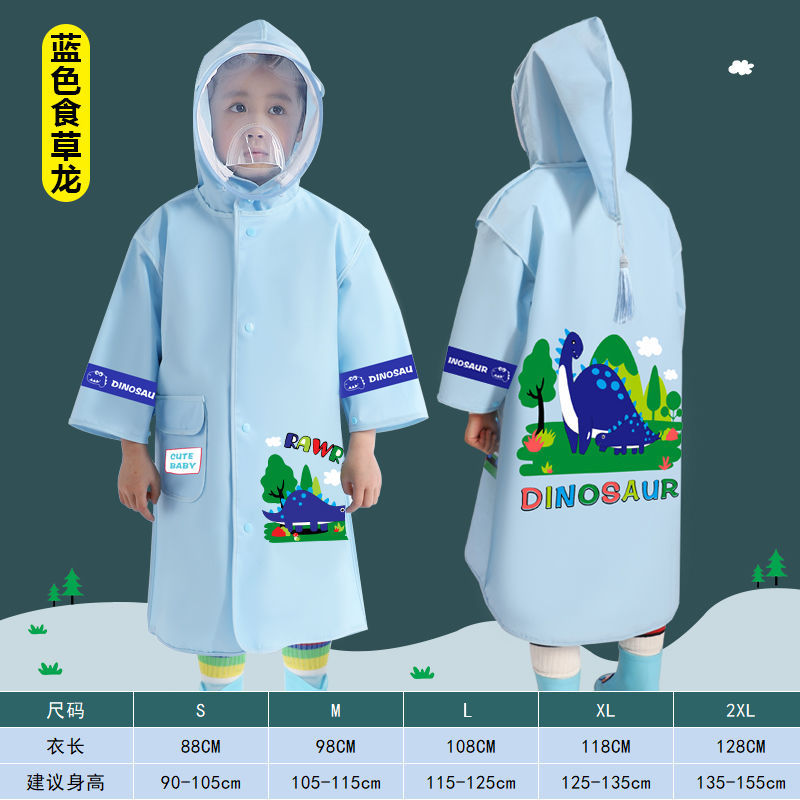 厂家直供儿童防护面罩雨衣加宽反光条书包位儿童雨披多色可选