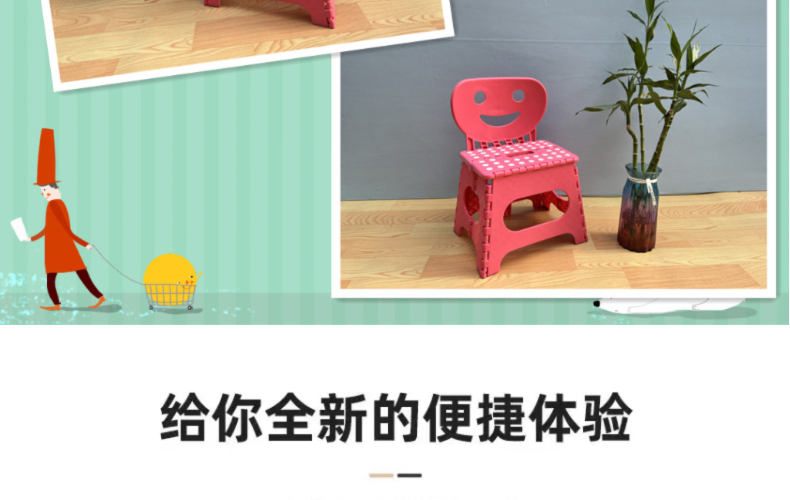 儿童折叠靠背椅加厚便携家用椅户外创意凳卡通靠背椅塑料折叠凳