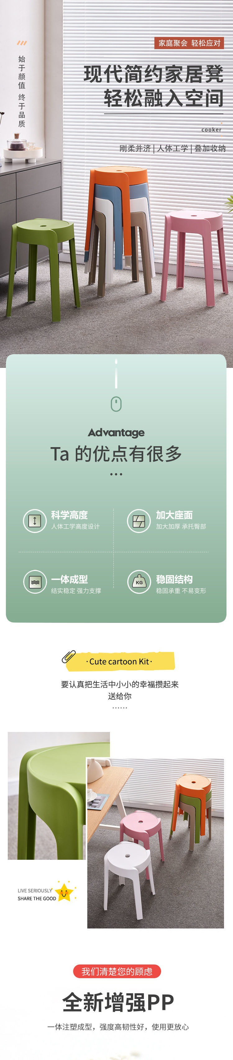 家用塑料凳子马卡龙餐桌板凳圆凳时尚网红轻奢简约椅子风车可螺叠