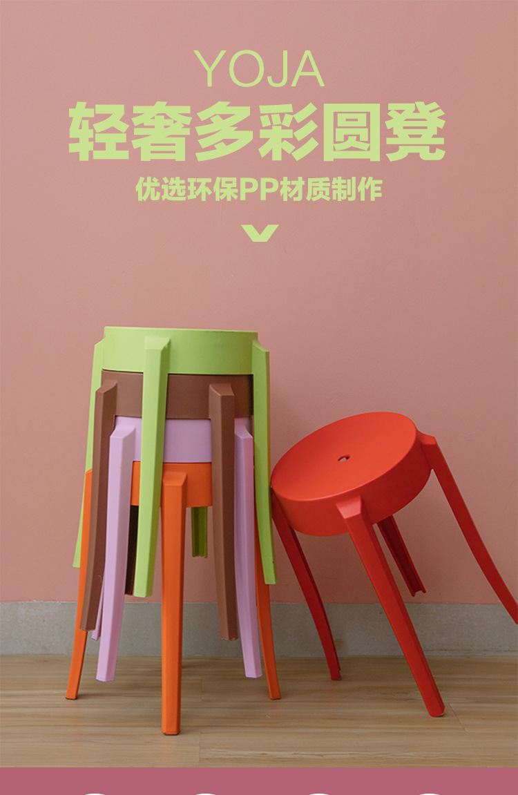 恒丰塑料凳子家用收纳凳椅子可叠加厚北欧简约小板凳成人圆凳马凳