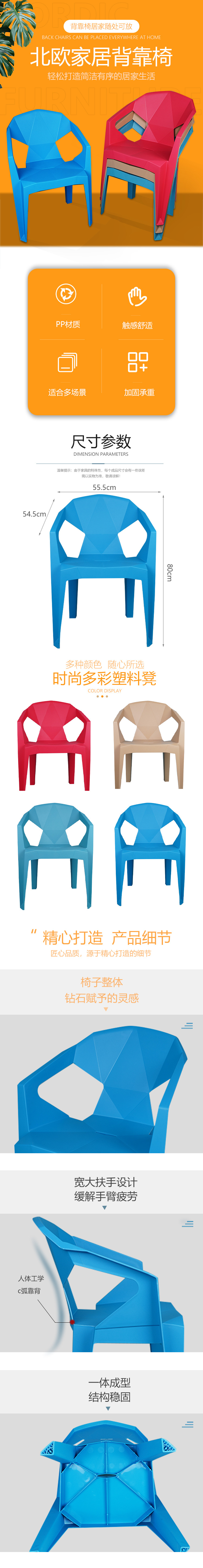 塑料椅子加厚靠背扶手椅麻将烧烤夜市大排档钻石餐厅沙滩成人户外