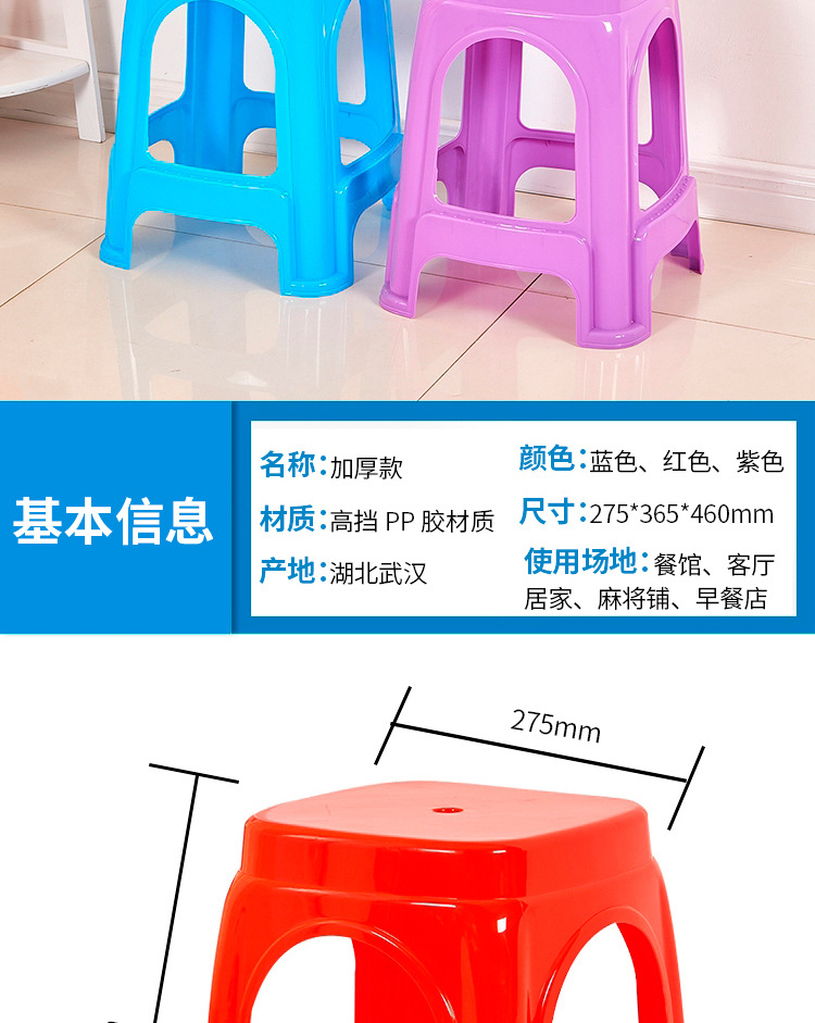 塑料凳子家用加厚客厅椅子简易熟胶高凳餐桌登子经济型朔料方板凳