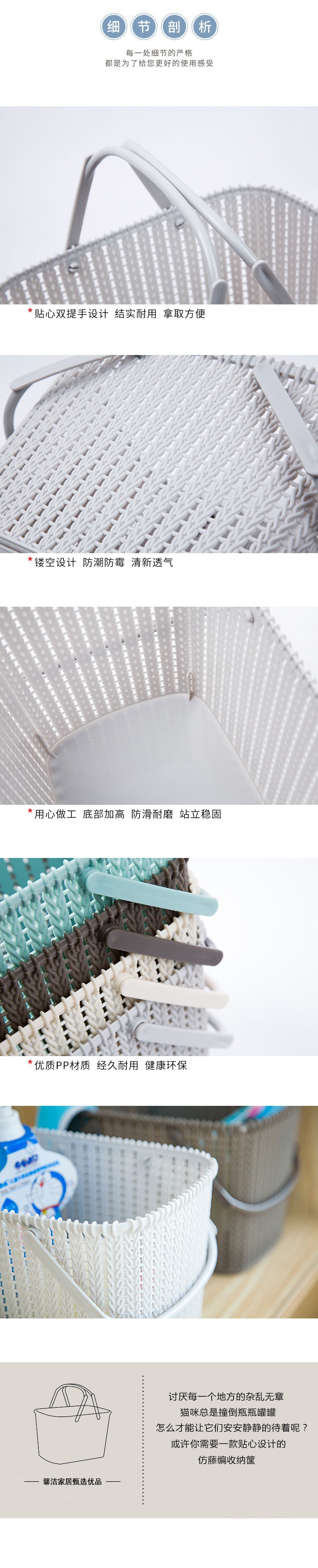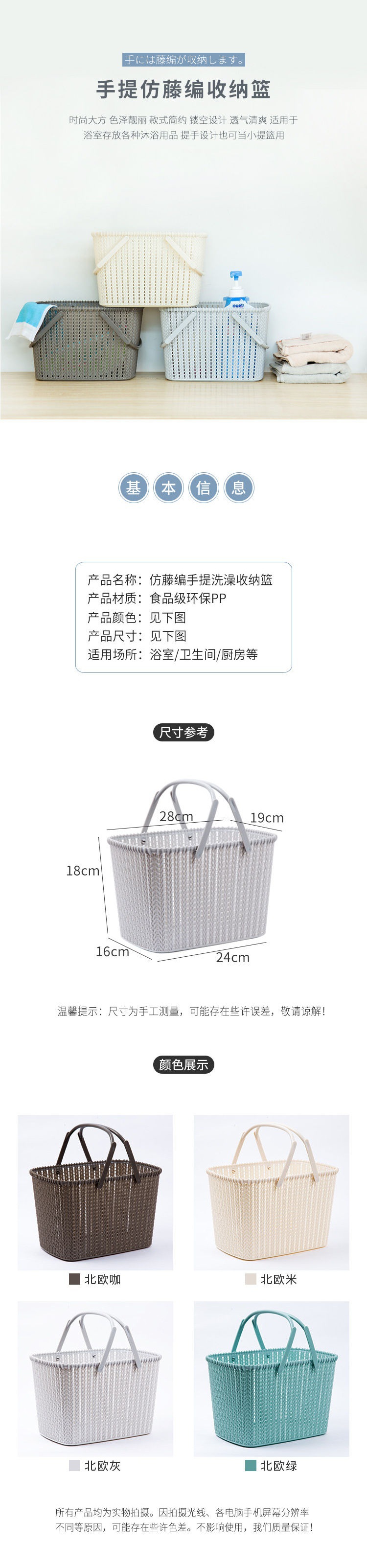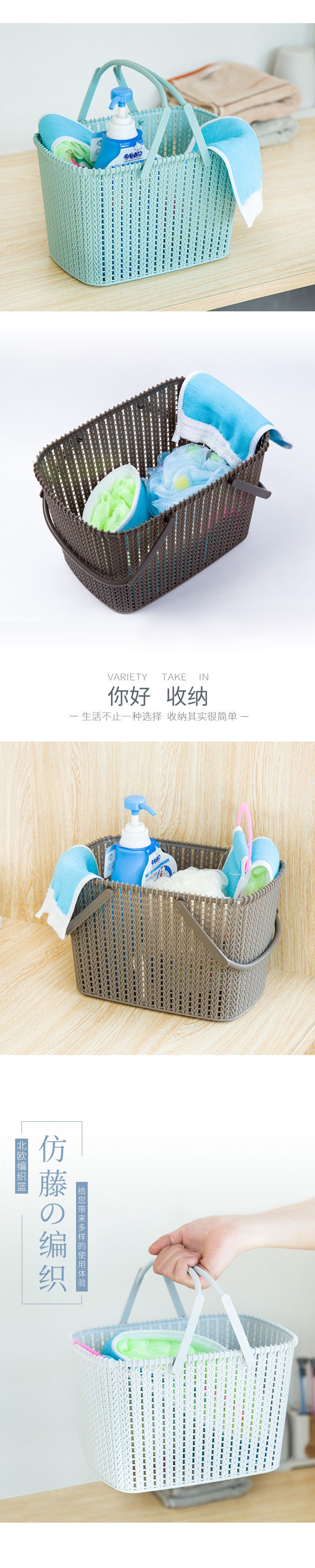 塑料篮子手提洗澡浴筐收纳放洗漱用品可爱范儿浴室收纳筐简约好看