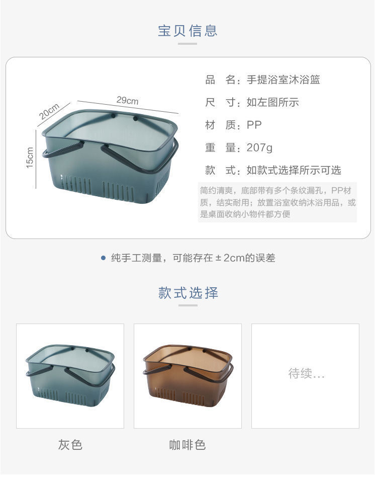 沐浴篮手提洗澡篮子浴室浴筐学生澡堂塑料洗漱蓝卫生间收纳筐洗浴
