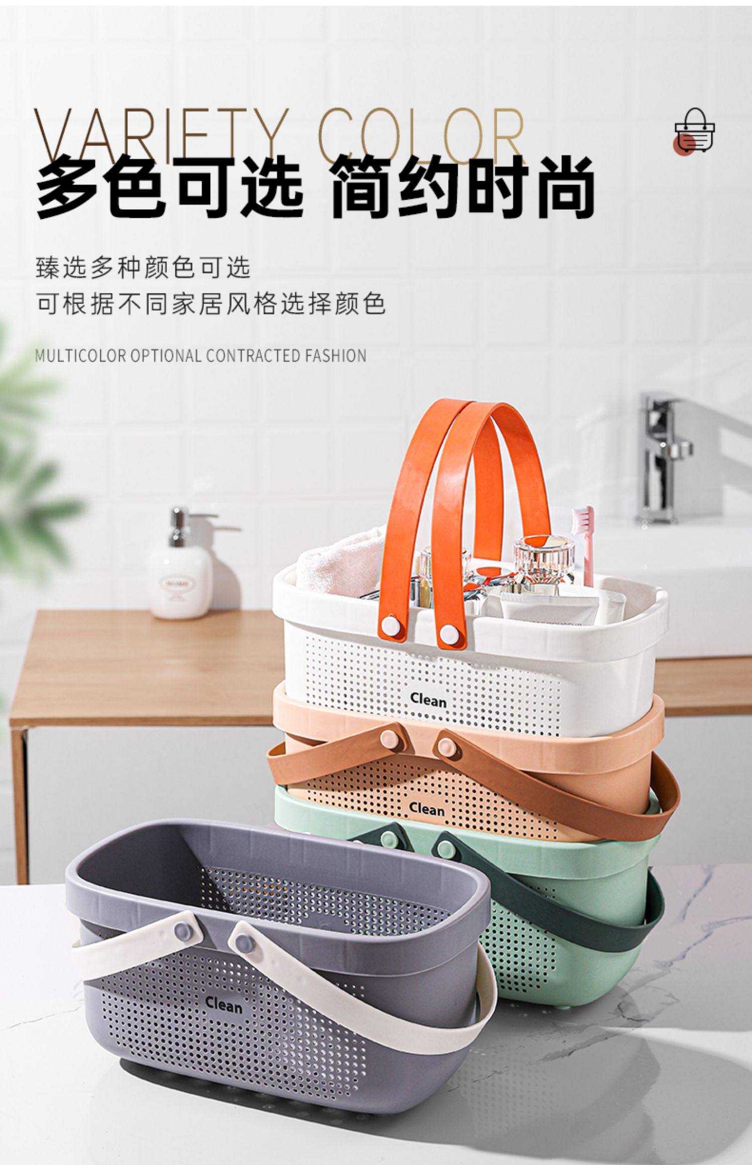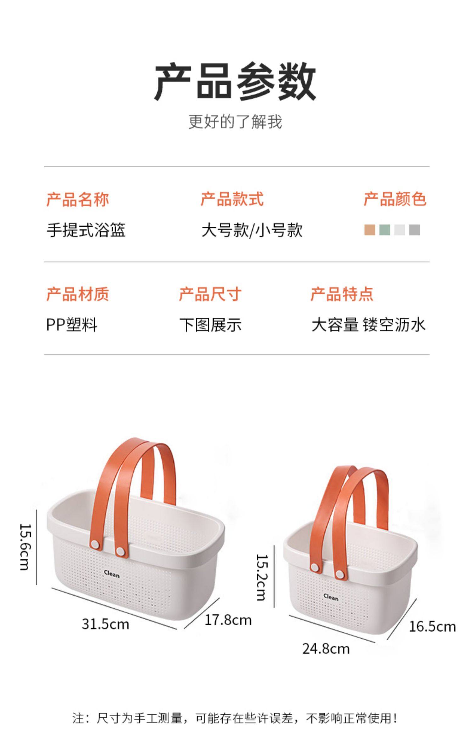手提式洗澡篮洗漱框收纳篮子卫生间洗浴沐浴室家用杂物野餐游泳筐