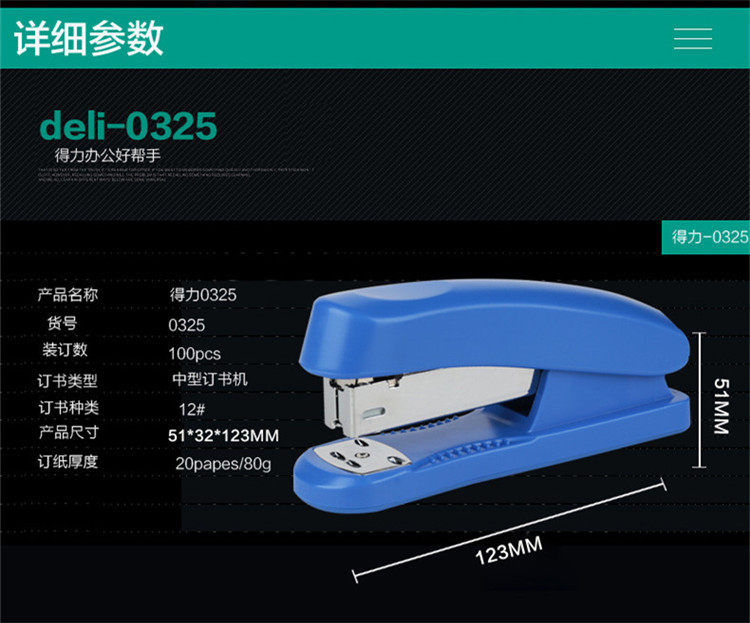得力0325省力型订书机12#订书器可订20页办公学生用品订书机大号