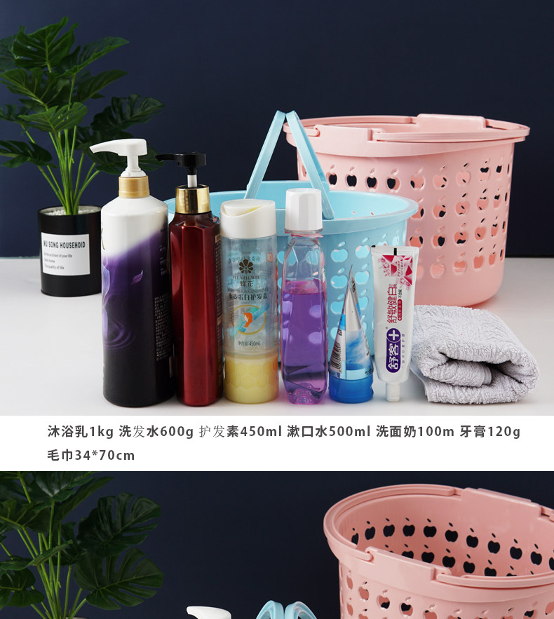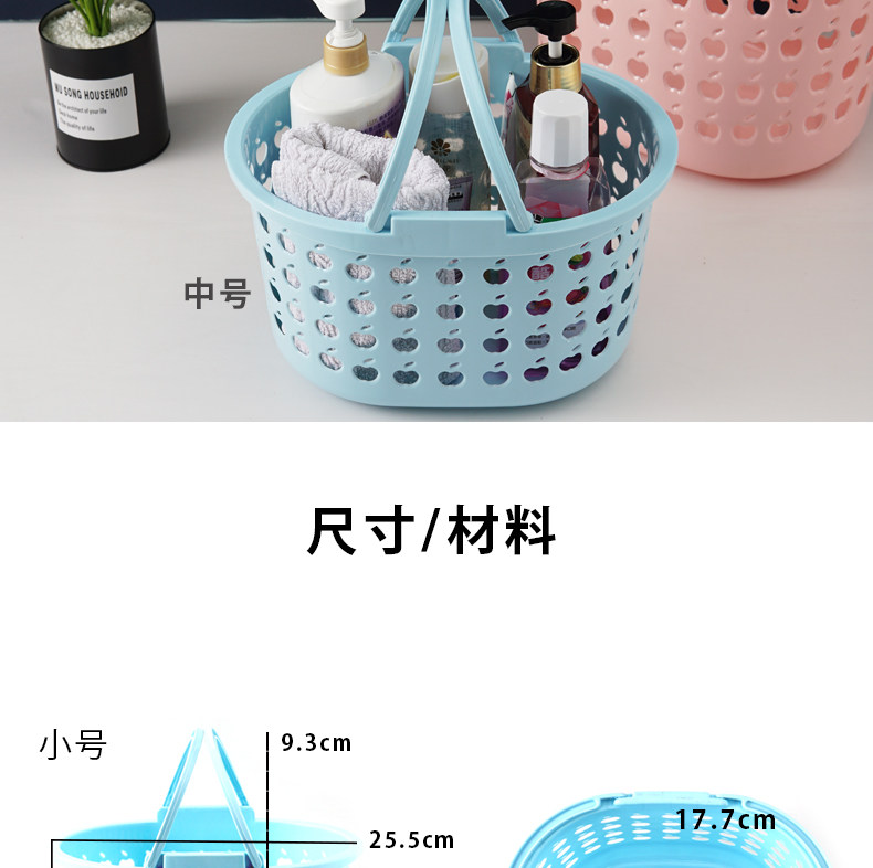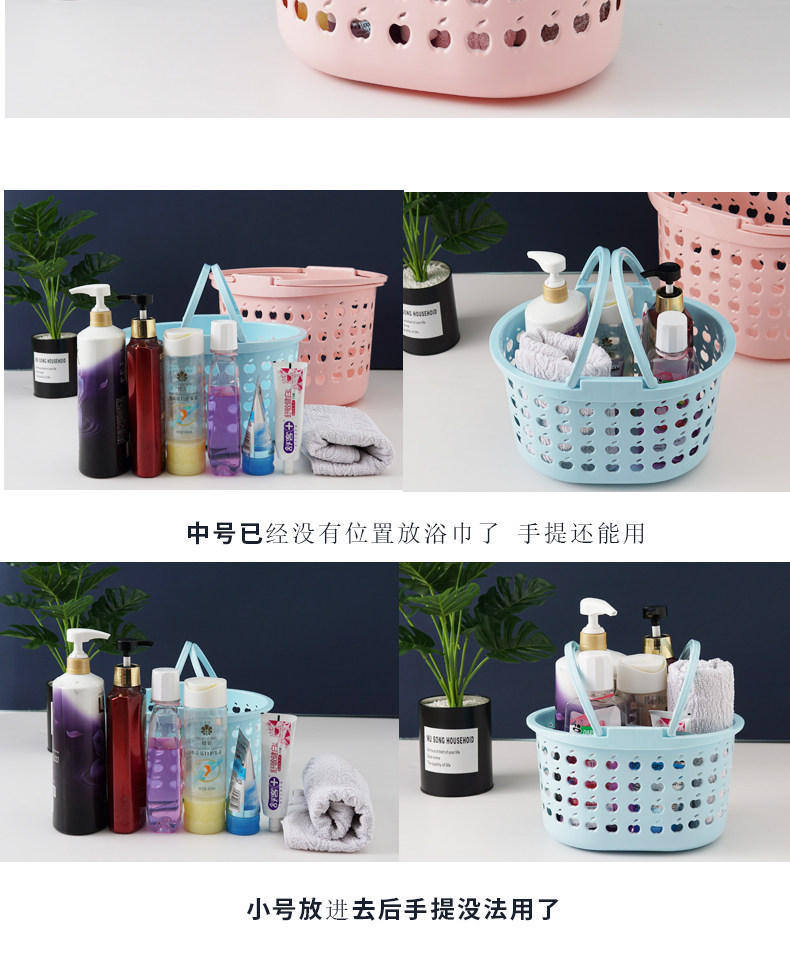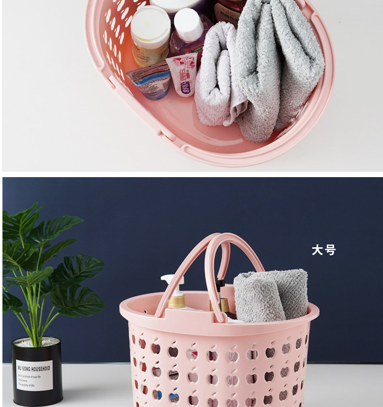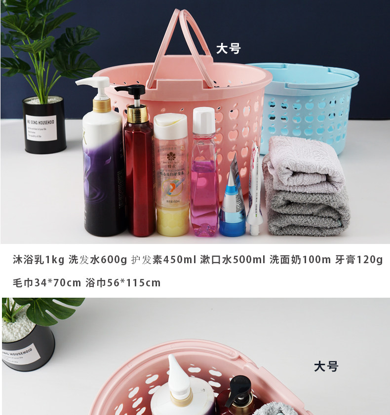 洗澡小提篮圆形篮手提洗漱收纳篮带洗发水化妆品沐浴筐家用镂空