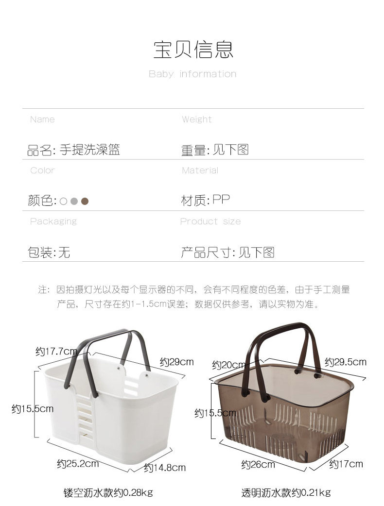洗澡篮子手提式浴室女收纳篮浴筐沐浴洗浴男士洗漱用品收纳筐